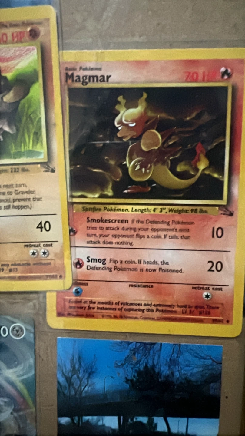 Buy & SellPokemon Magmar CardPokemon Magmar Card$10This is a Pokemon Magmar card. It's a Spitfire Pokémon with 70 HP. It comes with the Smokescreen and Smog attacks.ConditionGoodWHERE TO MEETLucky Strike Bowling SpotView MapSELLERRyanWoodside533 reviews0 chats·0 favorites·11 viewsSEND CHAT TO SELLERHi Ryan! I’m interested in your listing.Hi Ryan! I’m interested in your listing.Get the Karrot app to chatSign In to chat