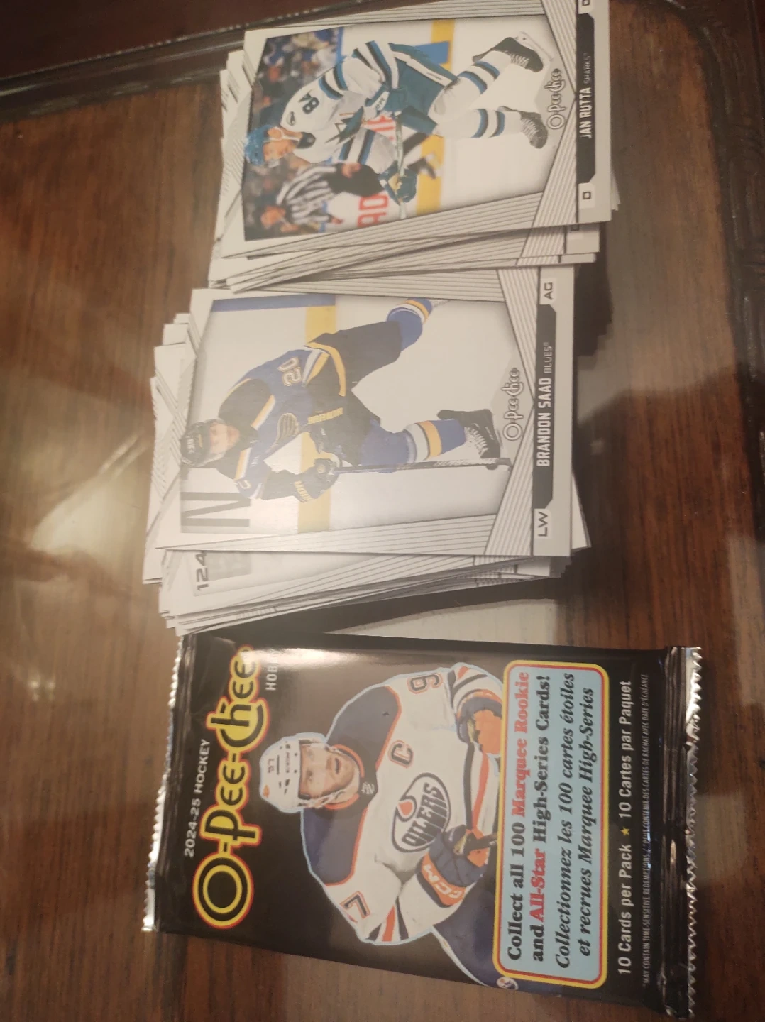 This is a pack of 2024-25 O-Pee-Chee hockey cards. It promises to collect all 100 Marquee Rookie and All-Star High-Series Cards. Each pack contains 10 cards per pack.