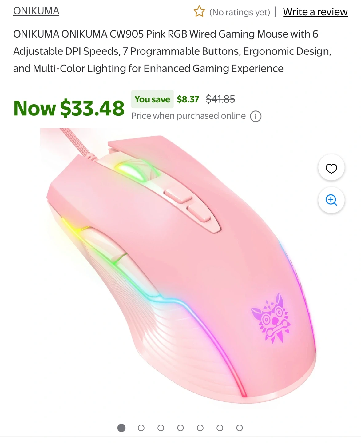 This is an ONIKUMA CW905 wired gaming mouse in pink. It features RGB lighting and adjustable DPI speeds. This mouse offers 6 adjustable DPI speeds and 7 programmable buttons.