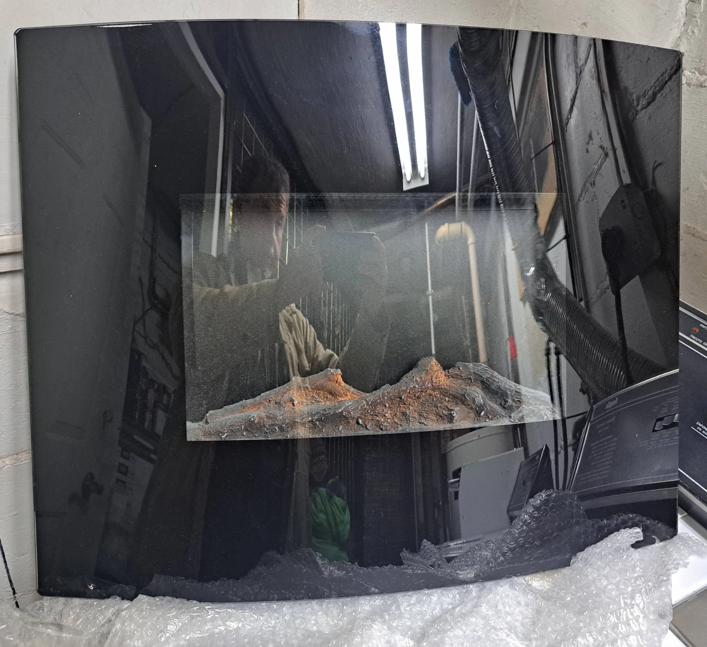 This electric fireplace insert comes with realistic logs and a black finish. It's designed to add ambiance and supplemental heat. The unit includes a power cord and is ready for installation.