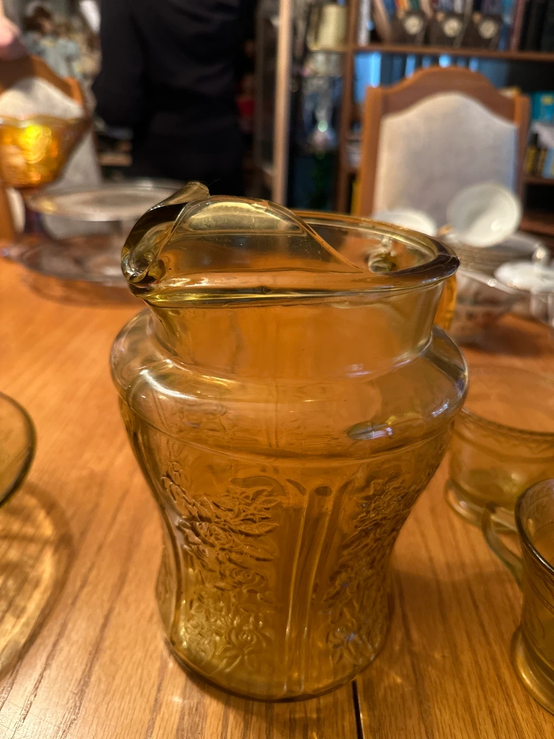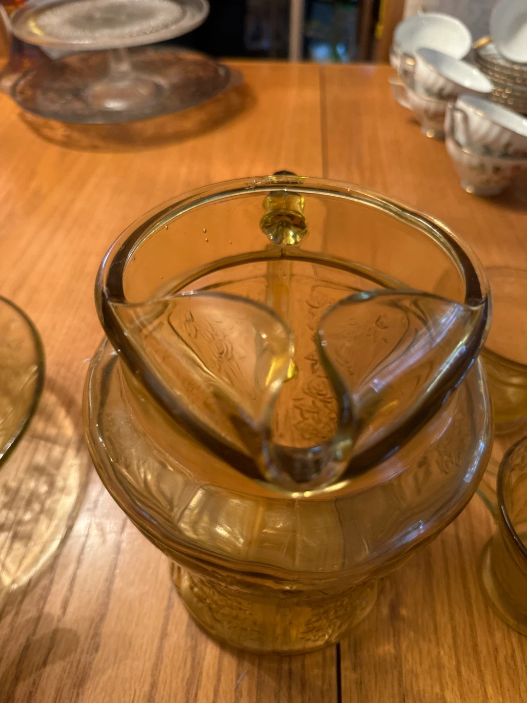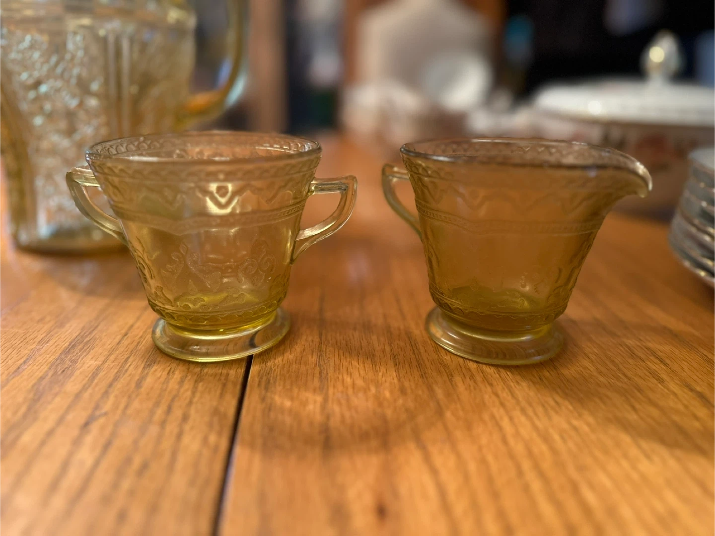 Vintage DEPRESSION GLASS Pitcher & Creamer Set