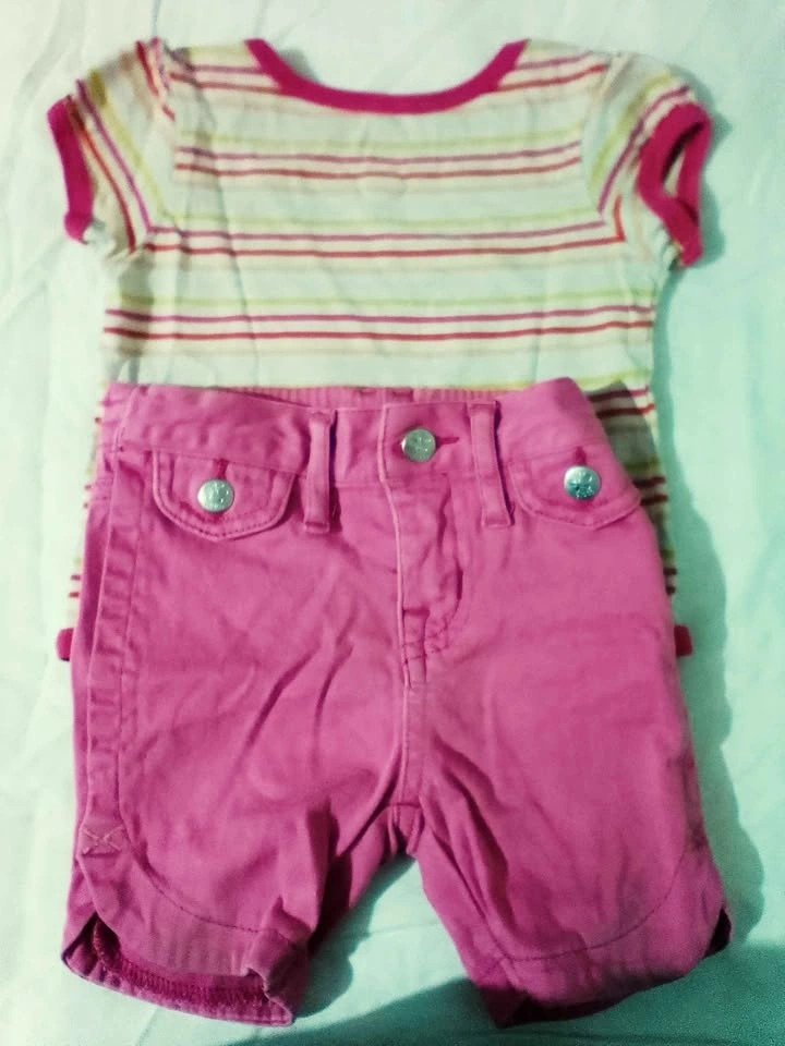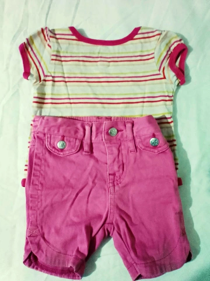 Buy & SellBaby Girl Striped Tee & Pink Shorts OutfitBaby Girl Striped Tee & Pink Shorts Outfit$5Cute baby outfit. Striped t-shirt has pink, red, and yellow stripes with pink trim. Pink shorts have silver button details on the pockets.WHERE TO MEETCheck LocationView MapSELLERverifiedJaraNew City700 reviews0 chats·0 favorites·2 viewsSEND CHAT TO SELLERHi Jara! I’m interested in your listing.Hi Jara! I’m interested in your listing.Get the Karrot app to chatSign In to chat