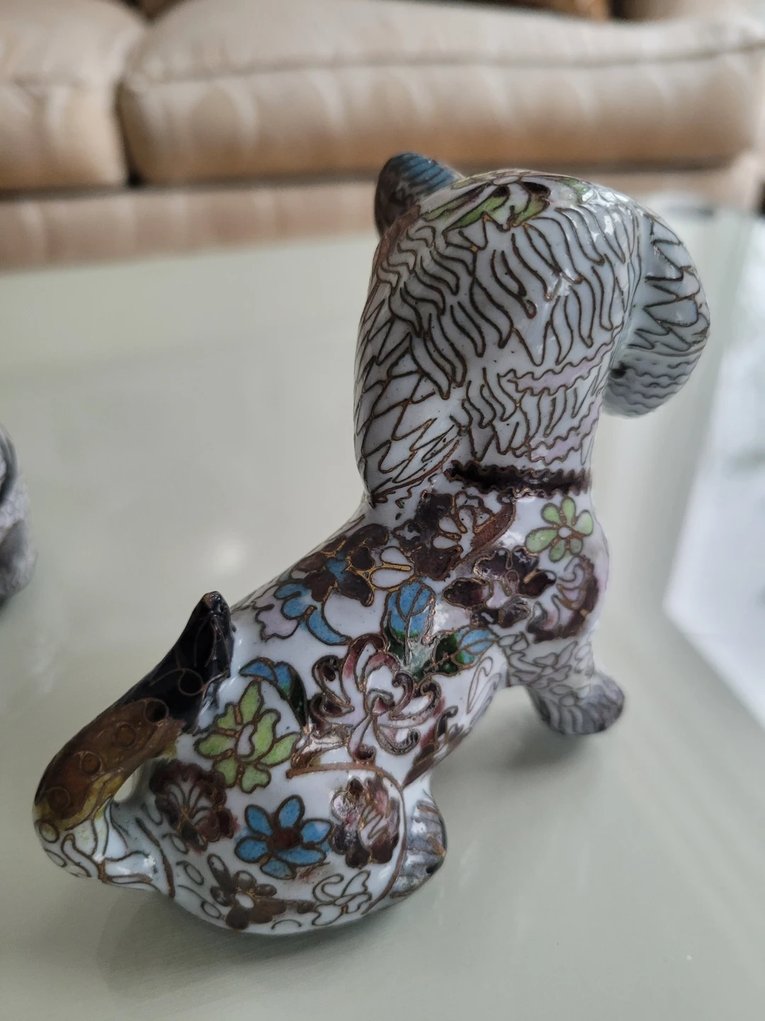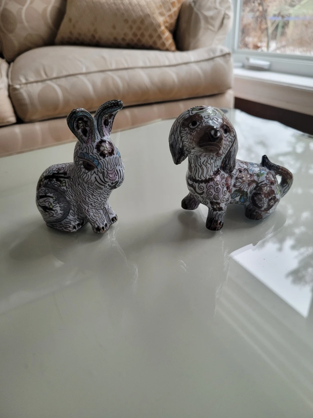 Vtg. Cloisonné Rabbit and Dog Figurines
