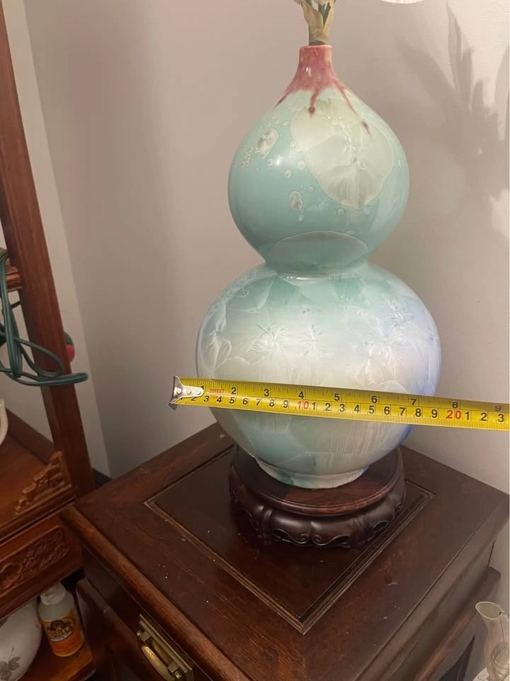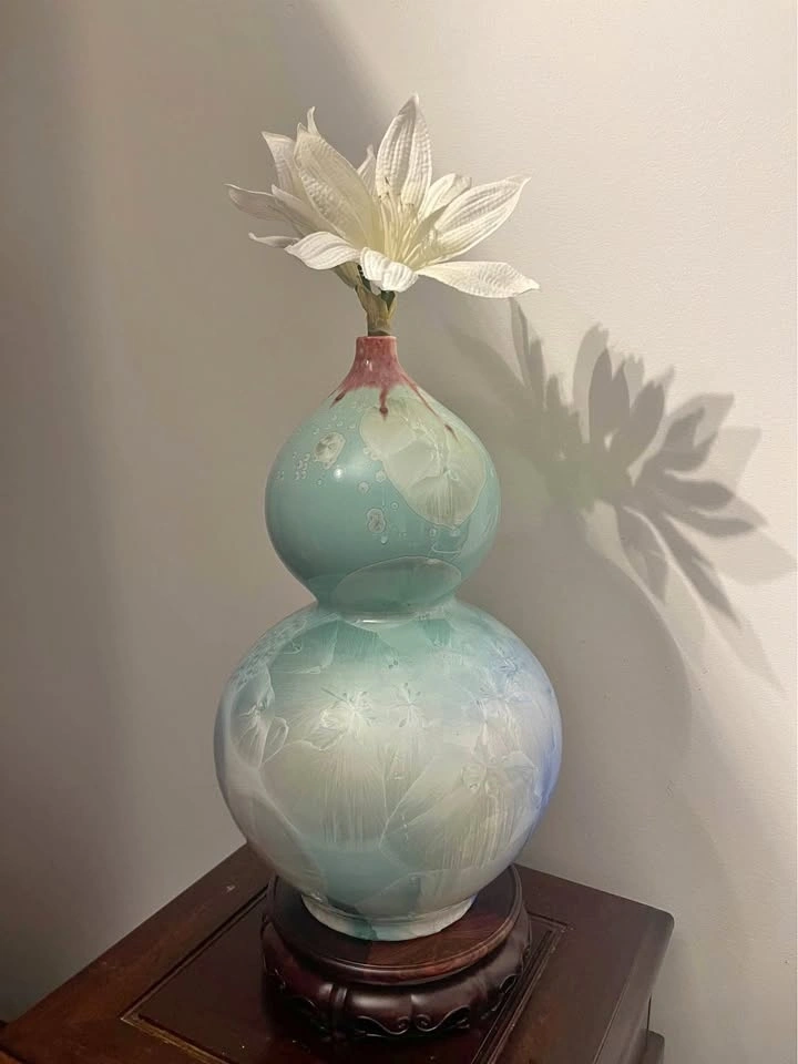 Unique Crystalline Glaze Gourd Vase w/ Flower