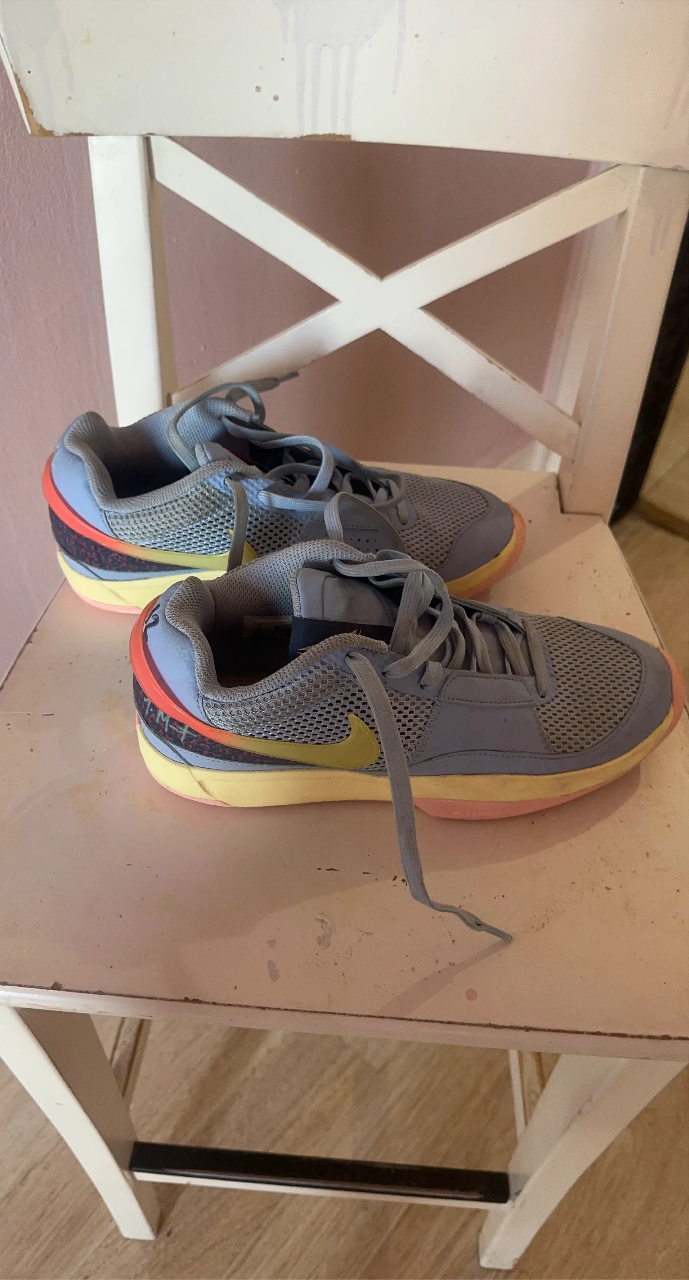 Light blue Nike running shoes with a yellow swoosh. Features a breathable mesh upper and a supportive sole with pink and yellow accents. The size is not visible.