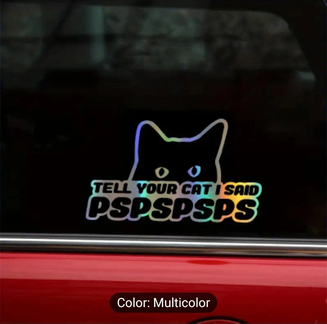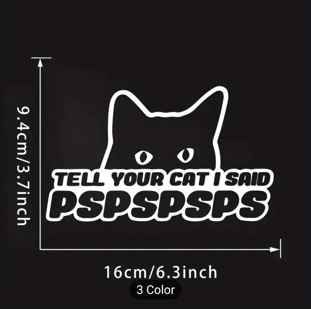 Funny car decal sticker with cat saying "Tell your cat I said PSPSPSPS"