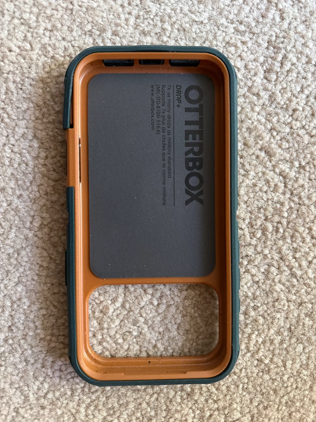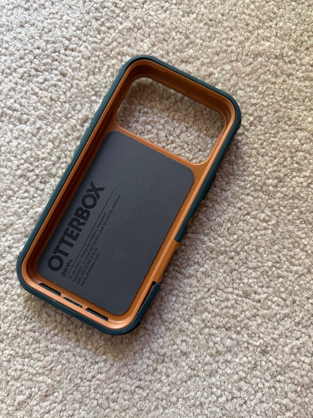 OtterBox Defender Series case. Offers 7x as many drops as military standard protection. Durable casing for your device. Suitable for iPhone 17 pro max. Original price is 70$.