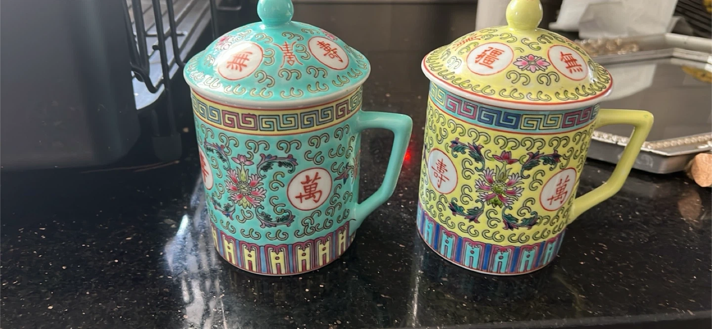 Set of 2 Chinese Porcelain Tea Mugs with Lids