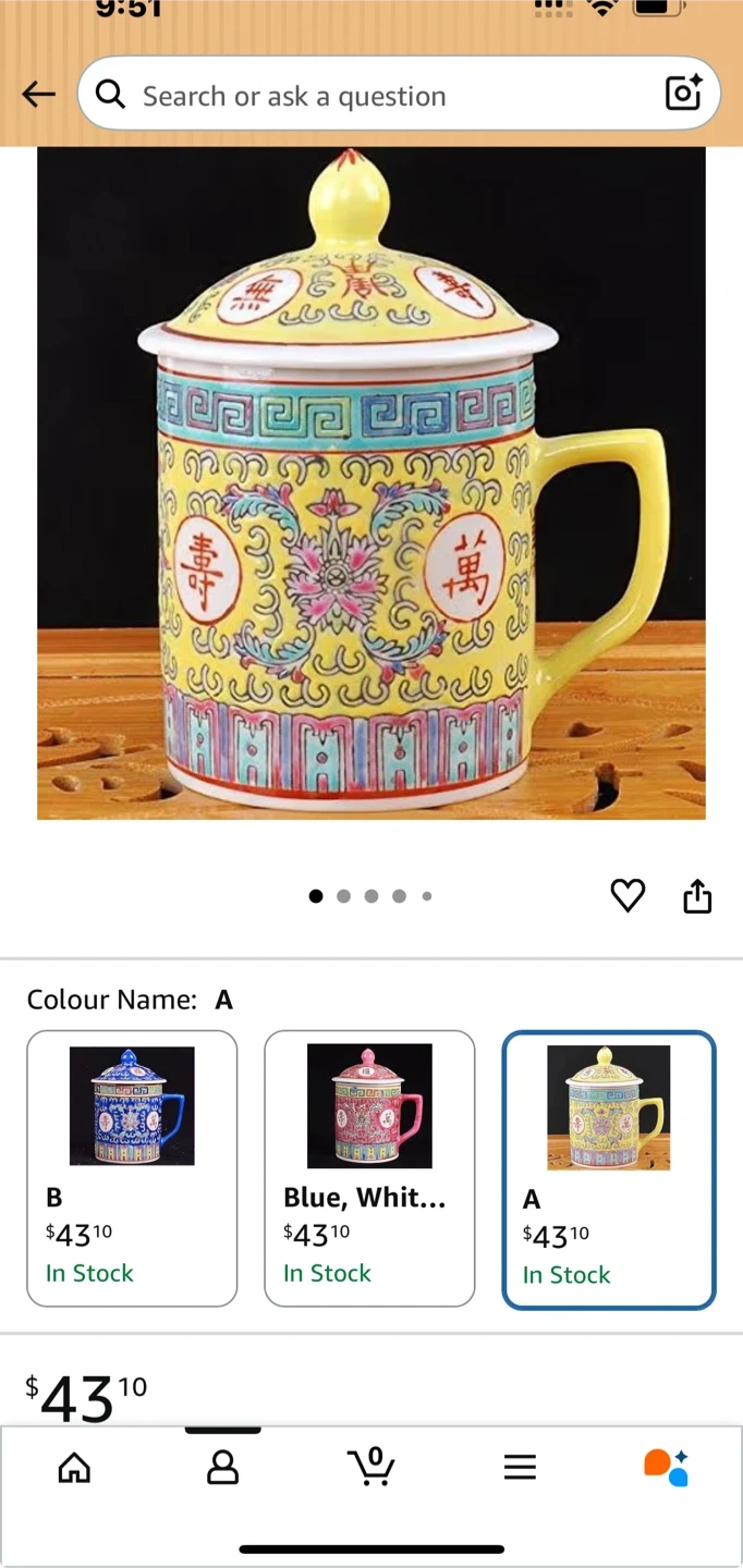 You'll get two beautifully decorated porcelain mugs with lids. One mug is a lovely teal, and the other is a sunny yellow, both featuring intricate traditional Chinese patterns and characters. They're perfect for enjoying your favorite hot beverages!