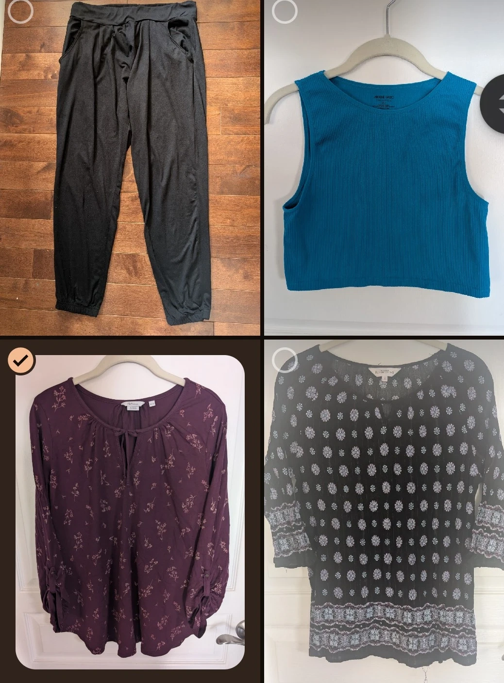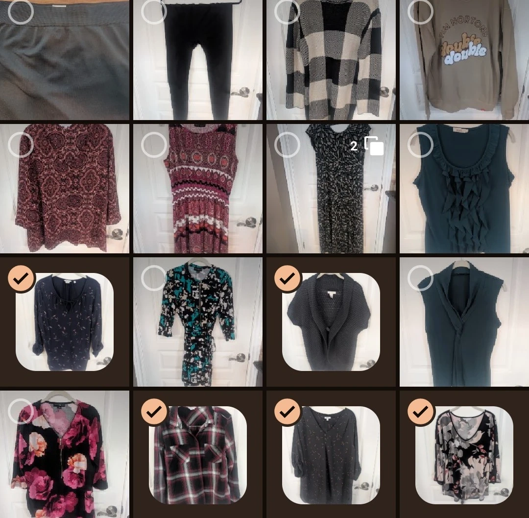 I have a variety of clothing items for sale, including tops, 2 dresses (including 1 maxi), sweatshirt, sweater, chunky knit cardigan/vest, and casual crop top and pants/leggings.
