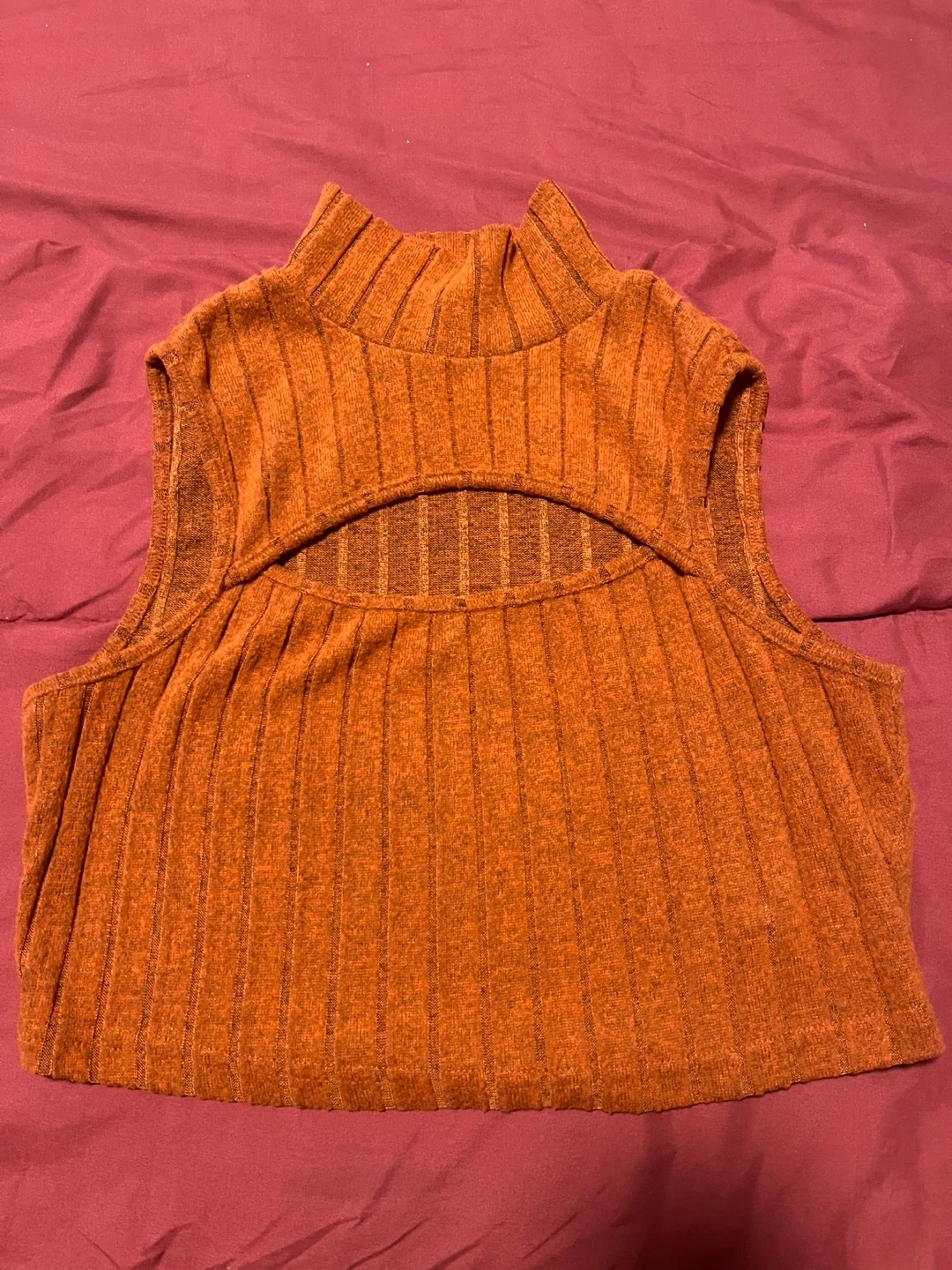 Buy & SellOrange Sleeveless Mock Neck Cutout Ribbed TopOrange Sleeveless Mock Neck Cutout Ribbed Top$10Orange sleeveless ribbed top with a mock neck and a cutout detail. Material is a soft knit. It's a stylish piece for layering or wearing on its own.WHERE TO MEETCheck LocationView MapSELLERverifiedAzizaCentennial Place Residence650 reviews0 chats·0 favorites·2 viewsSEND CHAT TO SELLERHi Aziza! I’m interested in your listing.Hi Aziza! I’m interested in your listing.Get the Karrot app to chatSign In to chat