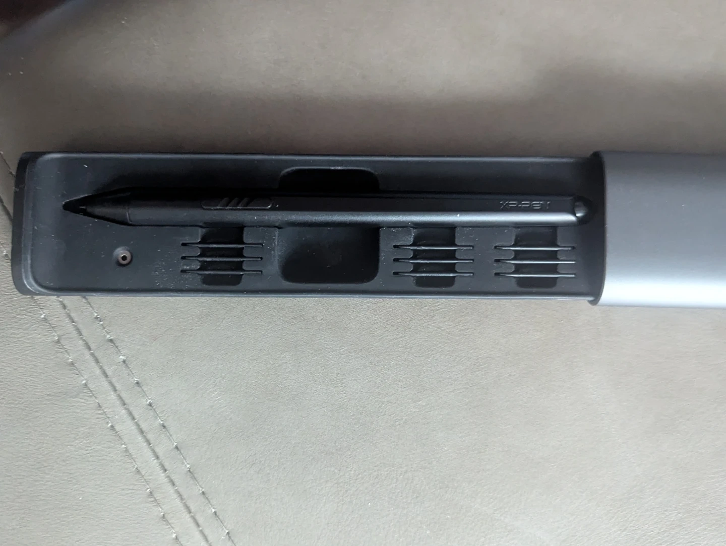 XP-PEN digital graphics drawing tablet and stylus included. It has express keys and a dial for shortcuts. Comes with its charging cable and storage case for the pen. ! No damage and works perfectly but has a little bit of residue from old stickers. Original price 700