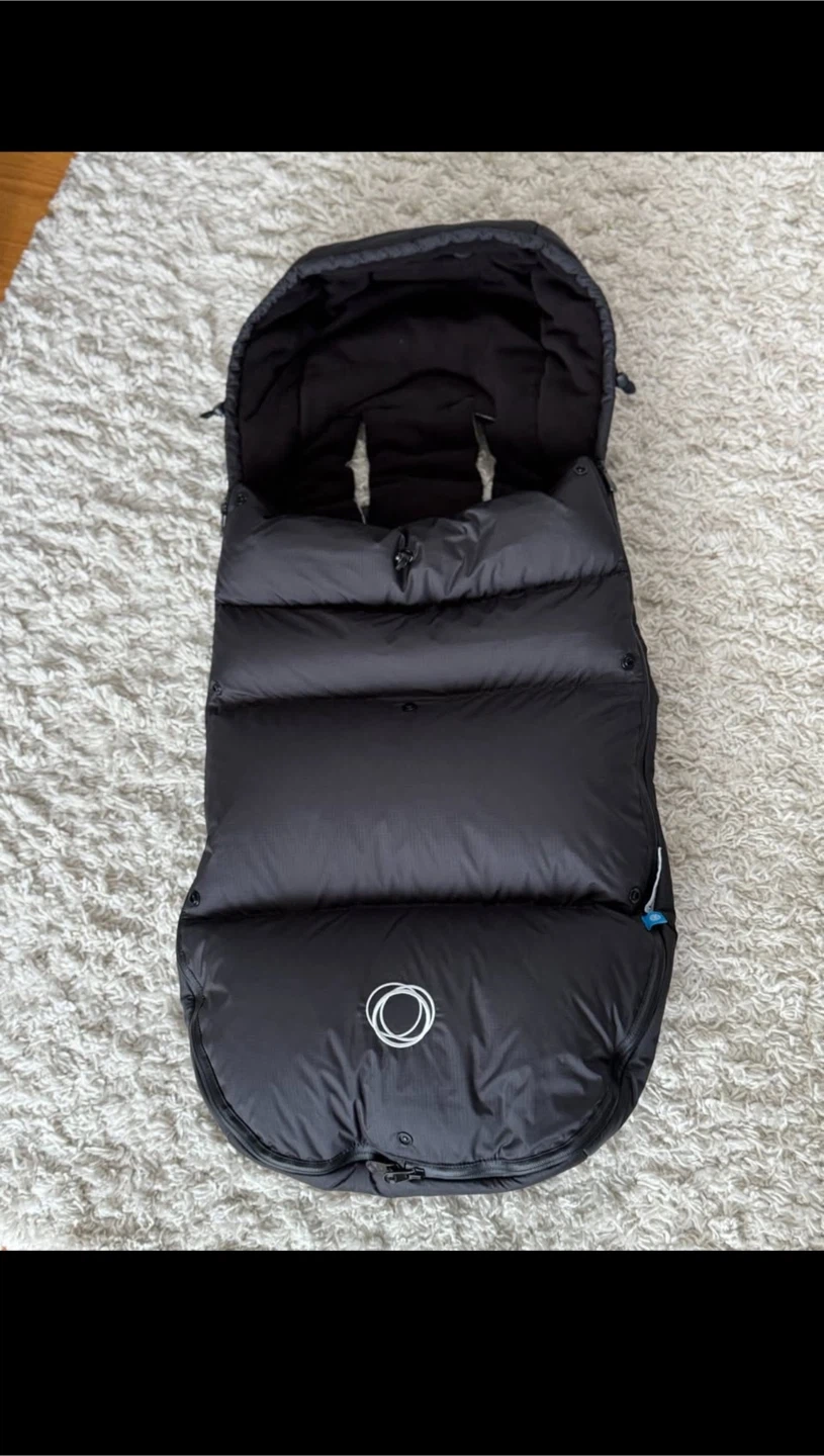 Keep your little one warm and cozy with this Bugaboo footmuff! It's in great condition and perfect for those chilly Canadian days. The footmuff is black and features the Bugaboo logo.