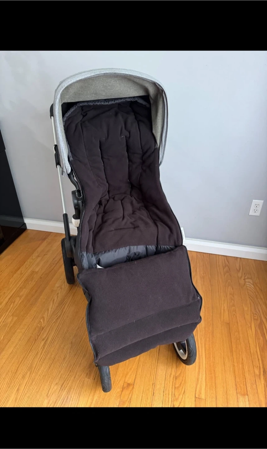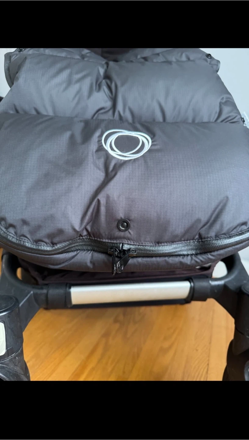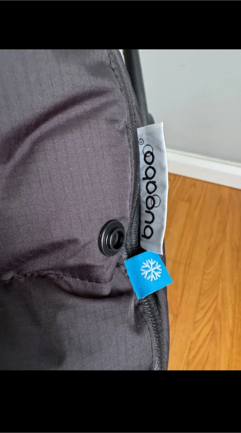 Keep your little one warm and cozy with this Bugaboo footmuff! It's in great condition and perfect for those chilly Canadian days. The footmuff is black and features the Bugaboo logo.
