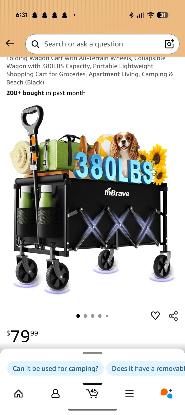 This InBrave wagon cart is made of thickened 600D Oxford fabric and features all-terrain wheels for smooth gliding on various surfaces. It has a weight capacity of 380 lbs and comes with 2 cup holders. The height is adjustable from 30.31" to 35.04".