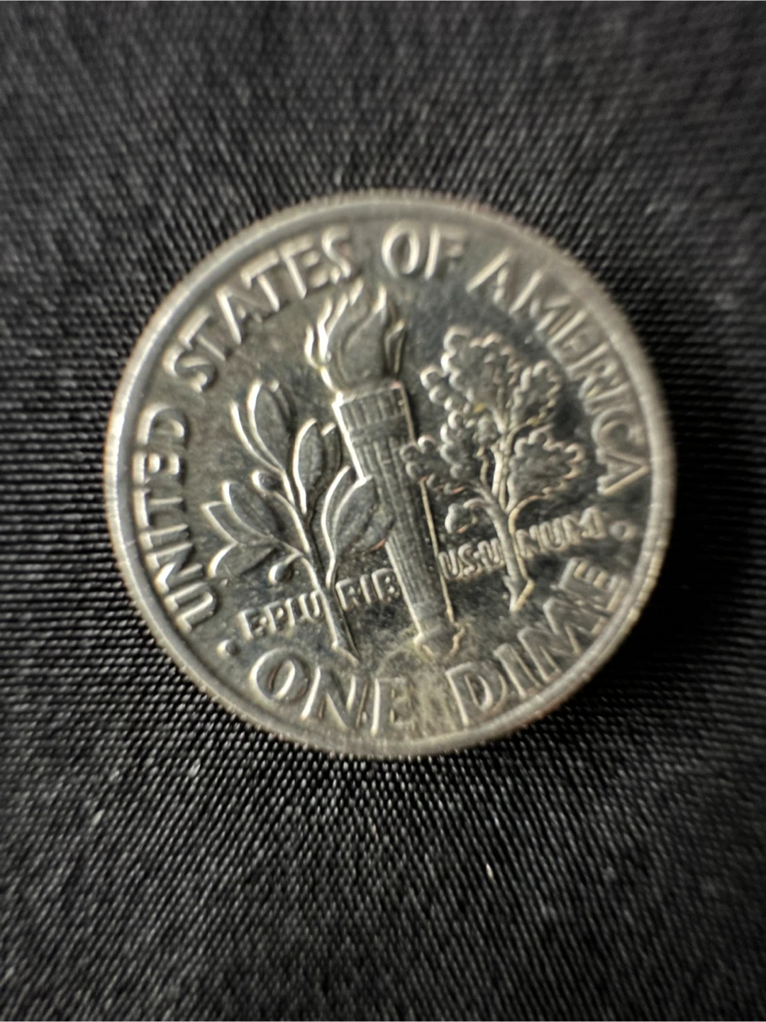 One United States dime. "E PLURIBUS UNUM" and "ONE DIME" are stamped on the reverse. "LIBERTY" and "IN GOD WE TRUST" are stamped on the obverse.