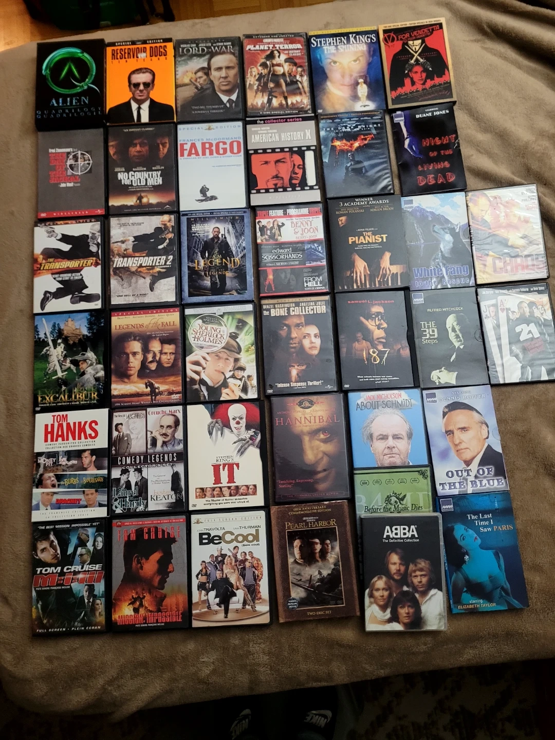 A collection of assorted DVD movies featuring a variety of genres and actors. This lot includes titles such as Alien Quadrilogy, Reservoir Dogs, The Transporter, and many more. They are all in standard DVD cases.