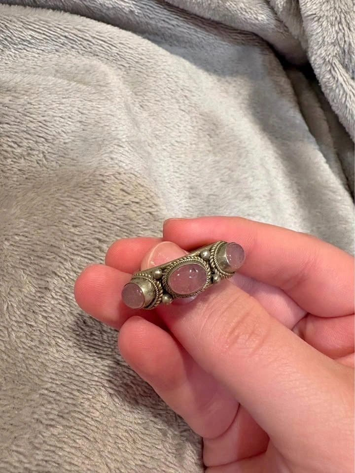 Buy & SellRose quartz ringRose quartz ring$25Pretty pink stone ring. Has three oval pink stones. Metal is silver tone with twisted wire and bead details. Adjustable band.WHERE TO MEETCheck LocationView MapSELLERGiannaEast Islip150 reviews0 chats·0 favorites·0 viewsSEND CHAT TO SELLERHi Gianna! I’m interested in your listing.Hi Gianna! I’m interested in your listing.Get the Karrot app to chatSign In to chat