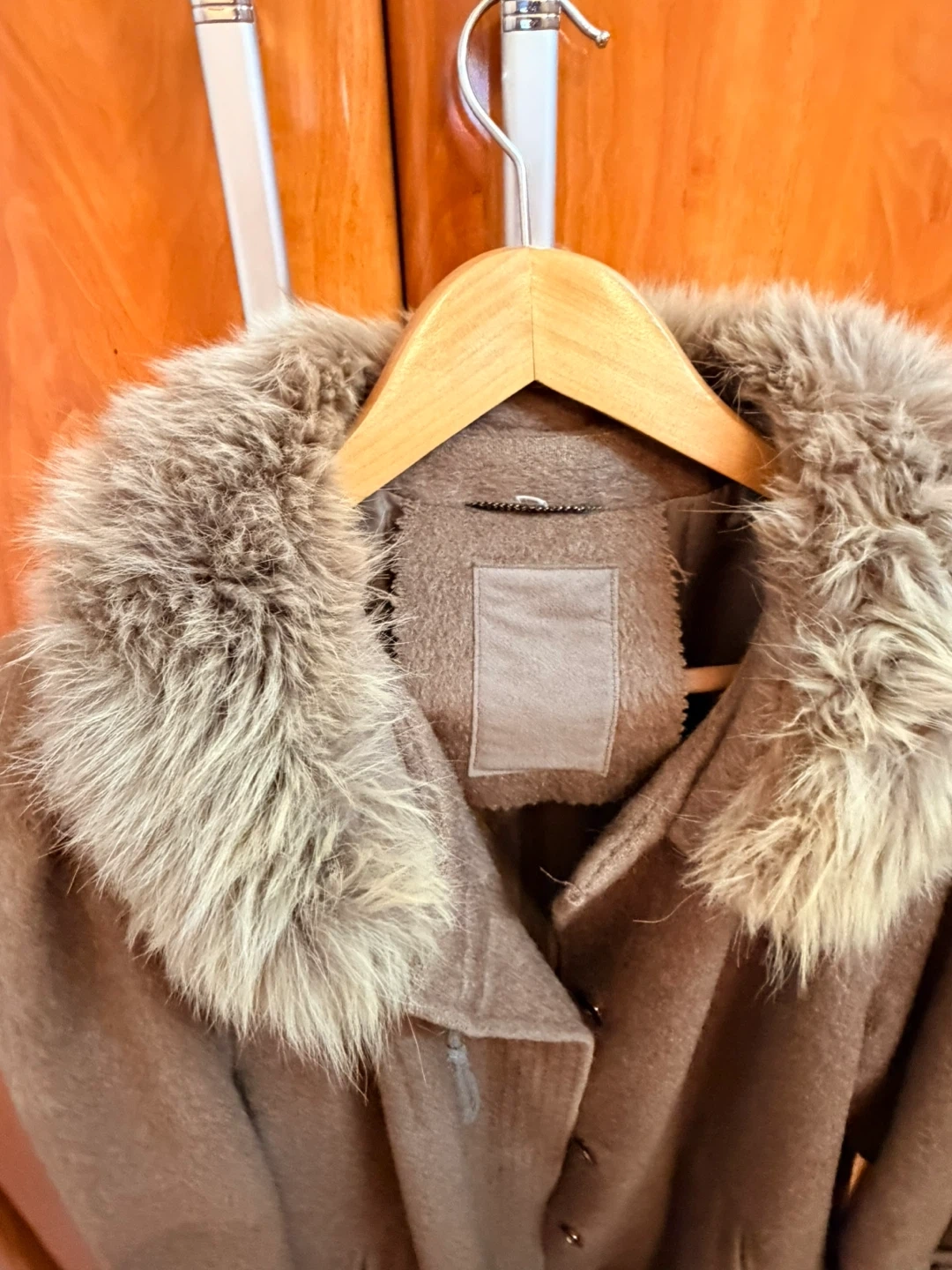 Terra Women's Brown Alpaca Wool Blend Coat with Fur Collar