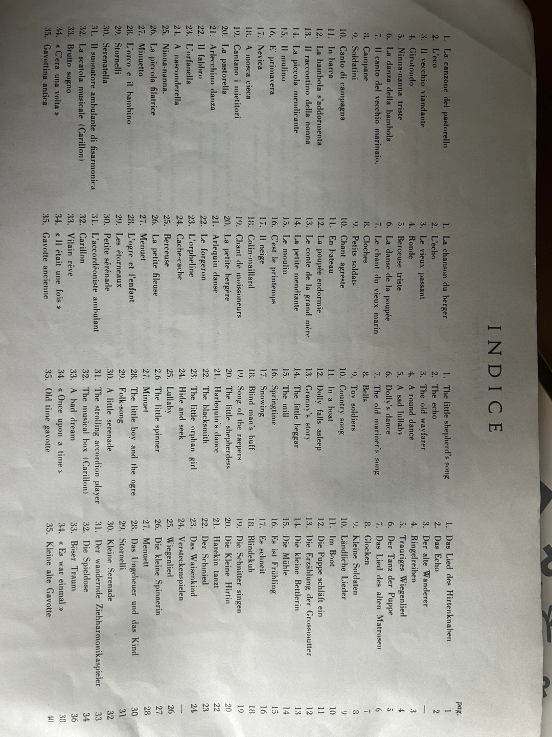 Piano music book - Juvenilia - TITO ARPEA. Contains pieces for beginner piano players. Includes an index of pieces. In Italian.