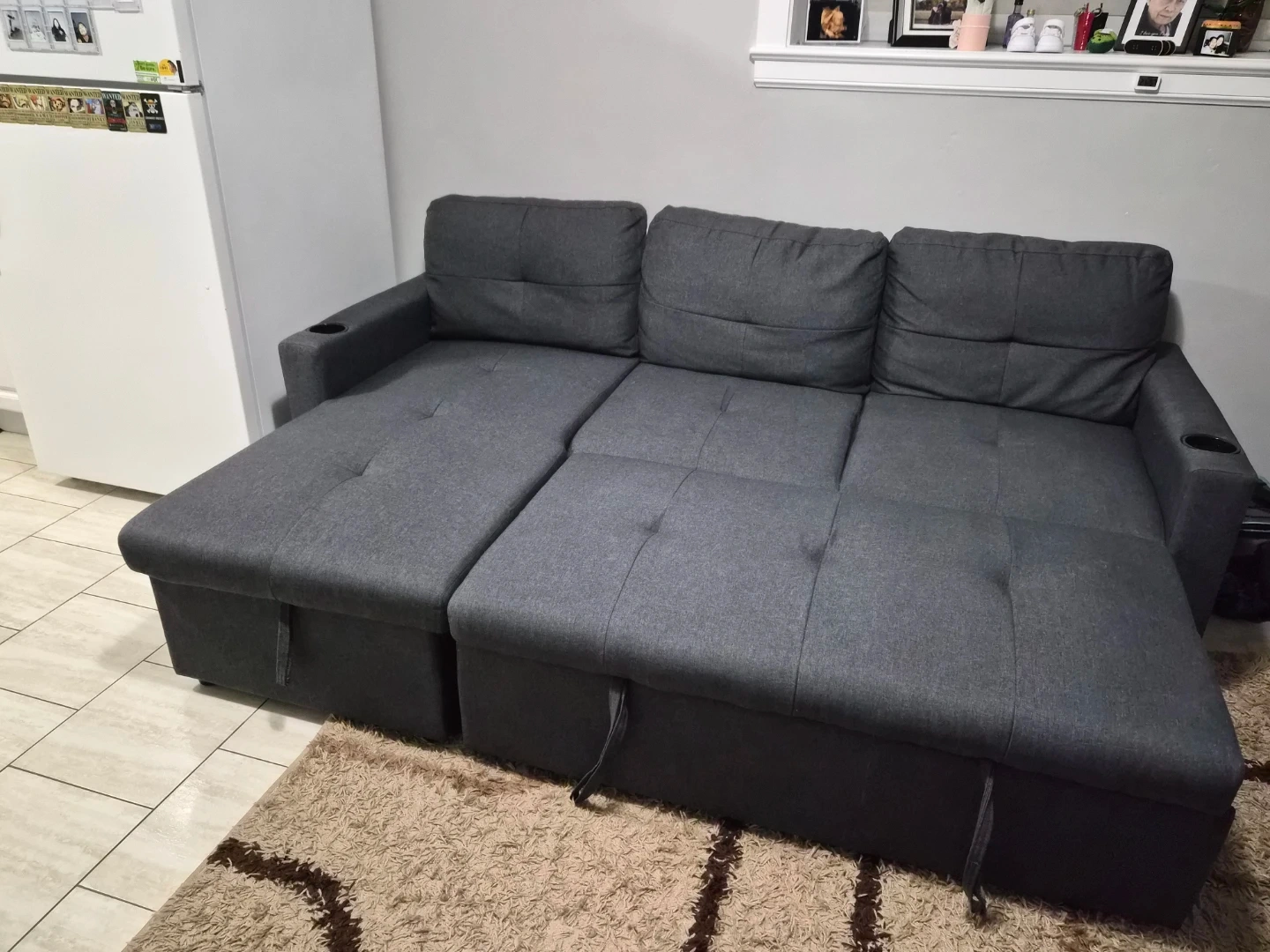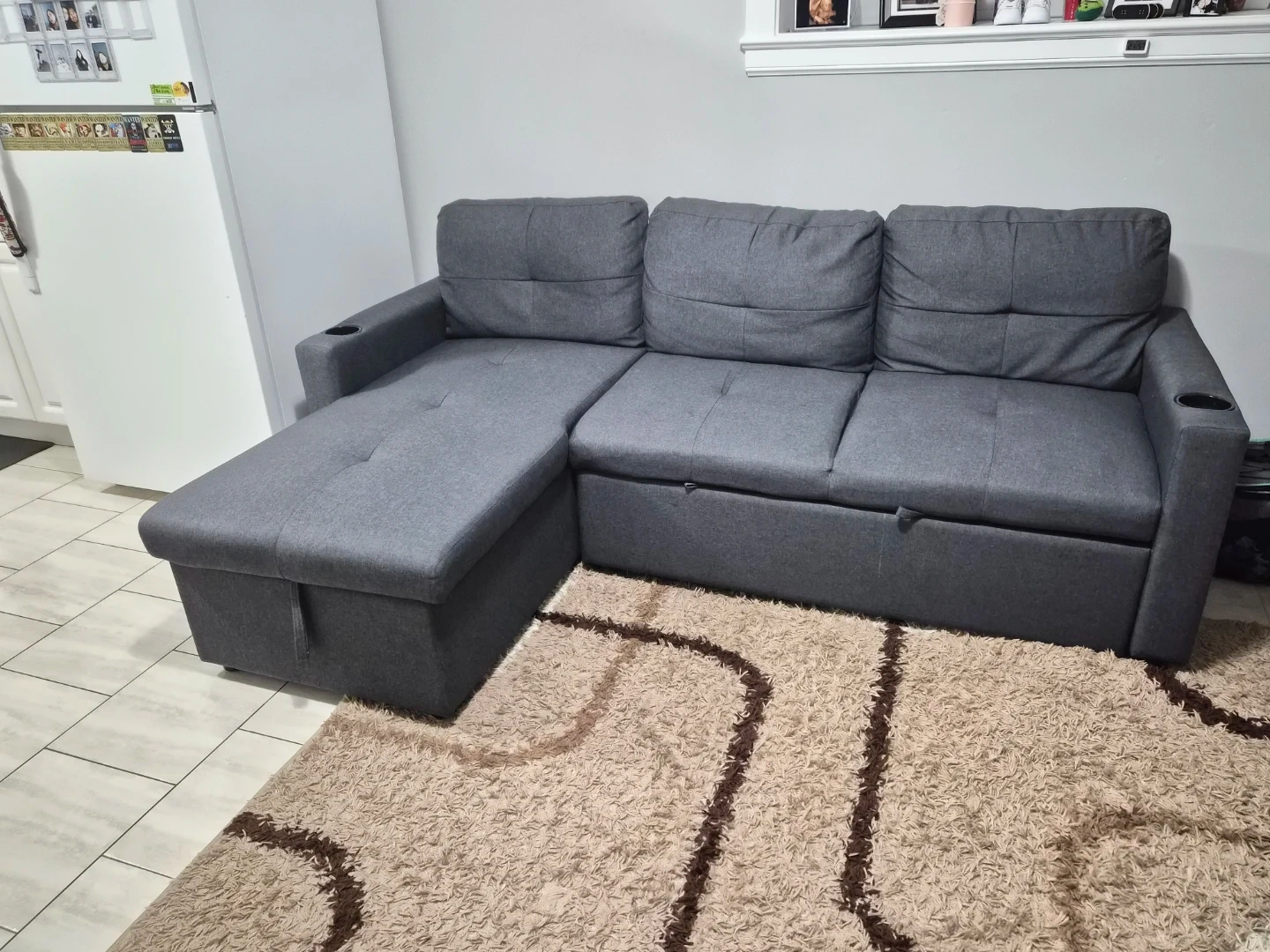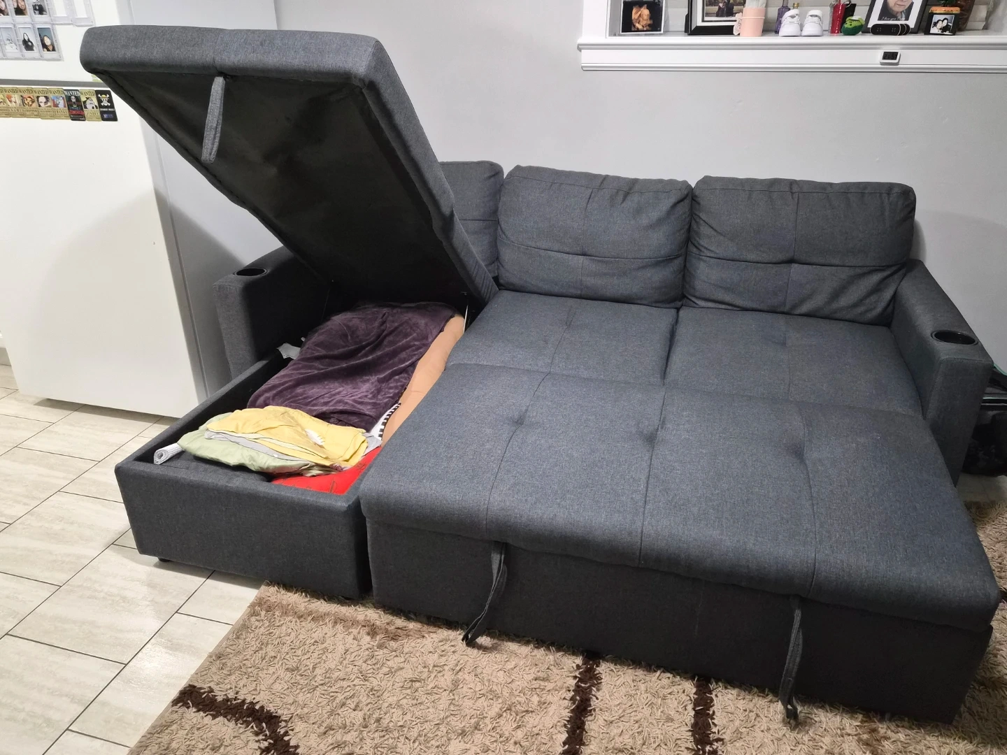 Grey Sectional Sofa Bed with Storage