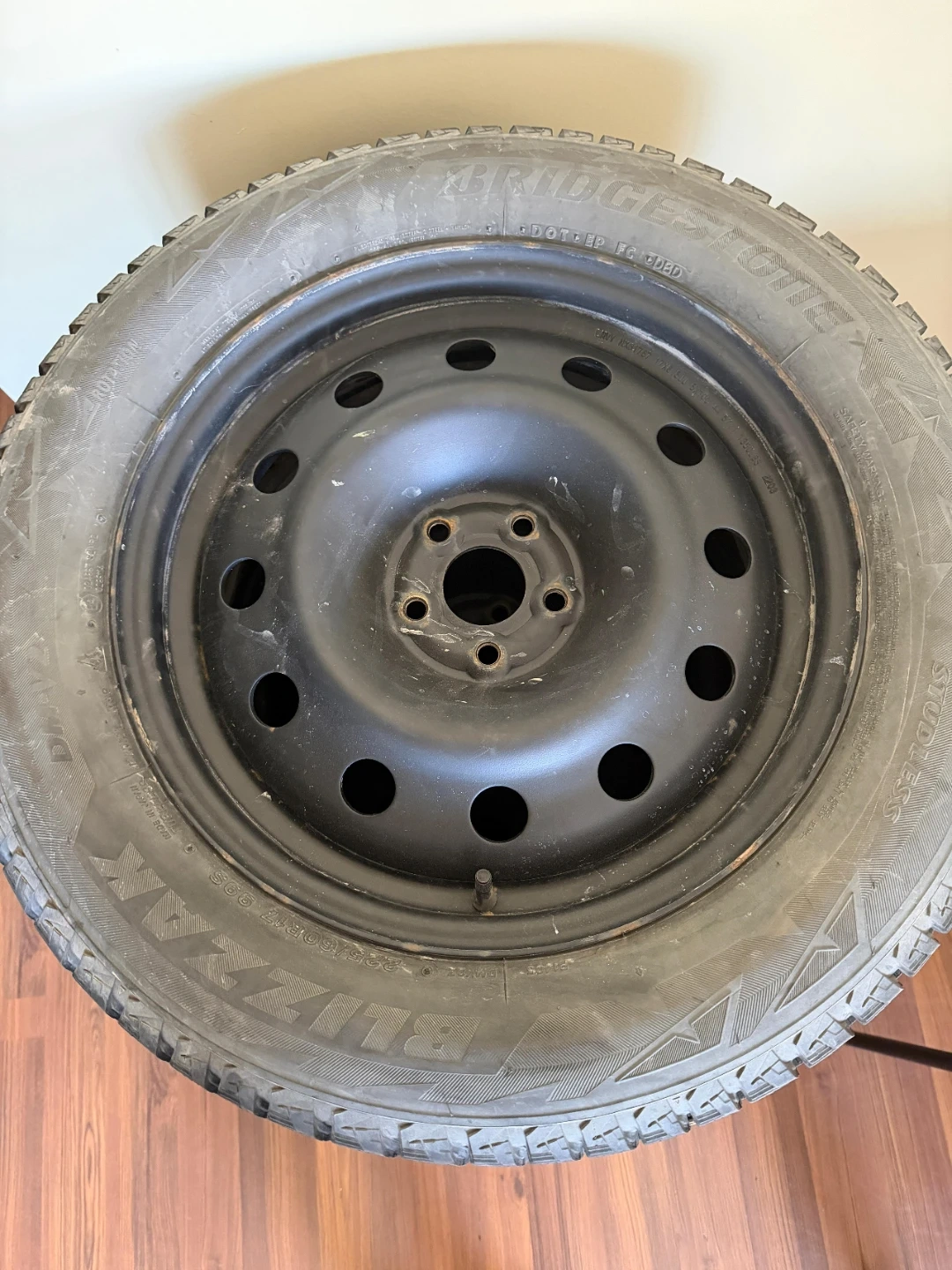Selling a full set of Bridgestone Blizzak winter tires mounted on steel rims.