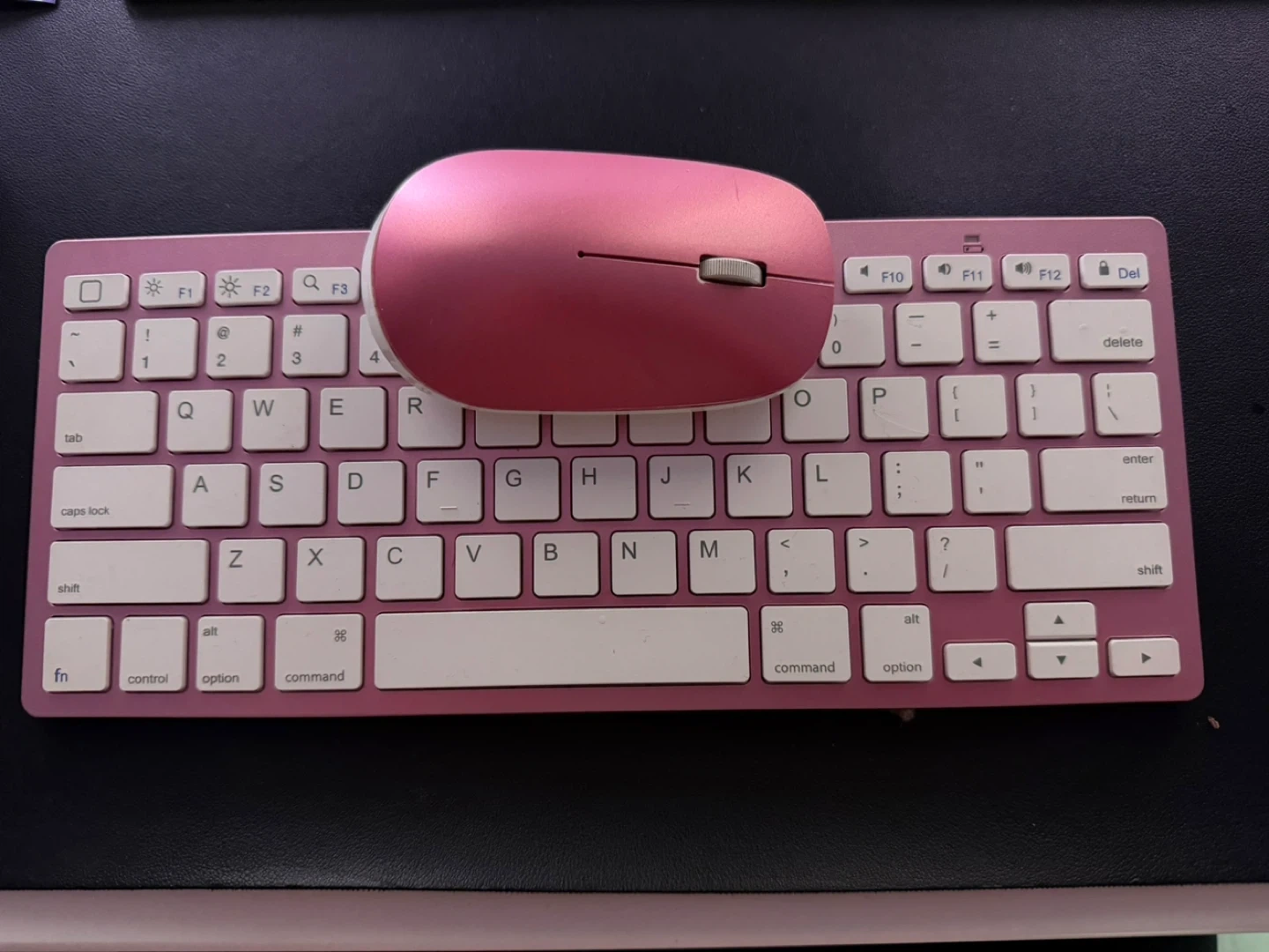 Selling a cute pink wireless keyboard and mouse set! Perfect for adding a pop of colour to your workspace. The keyboard includes function keys and command/option keys. The mouse is also a matching pink colour. Both are in great condition!