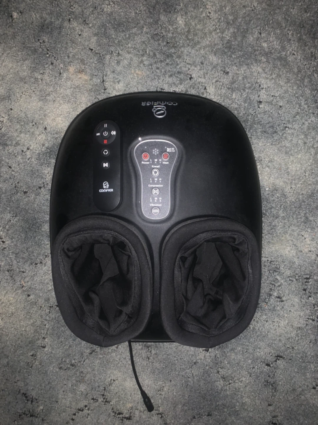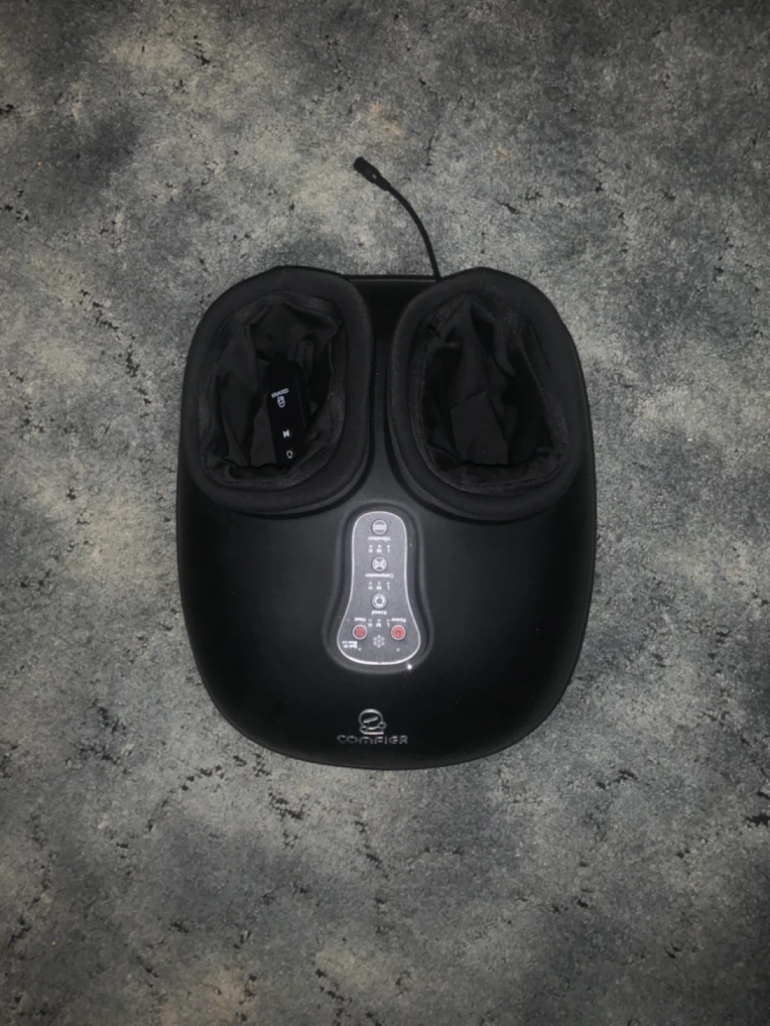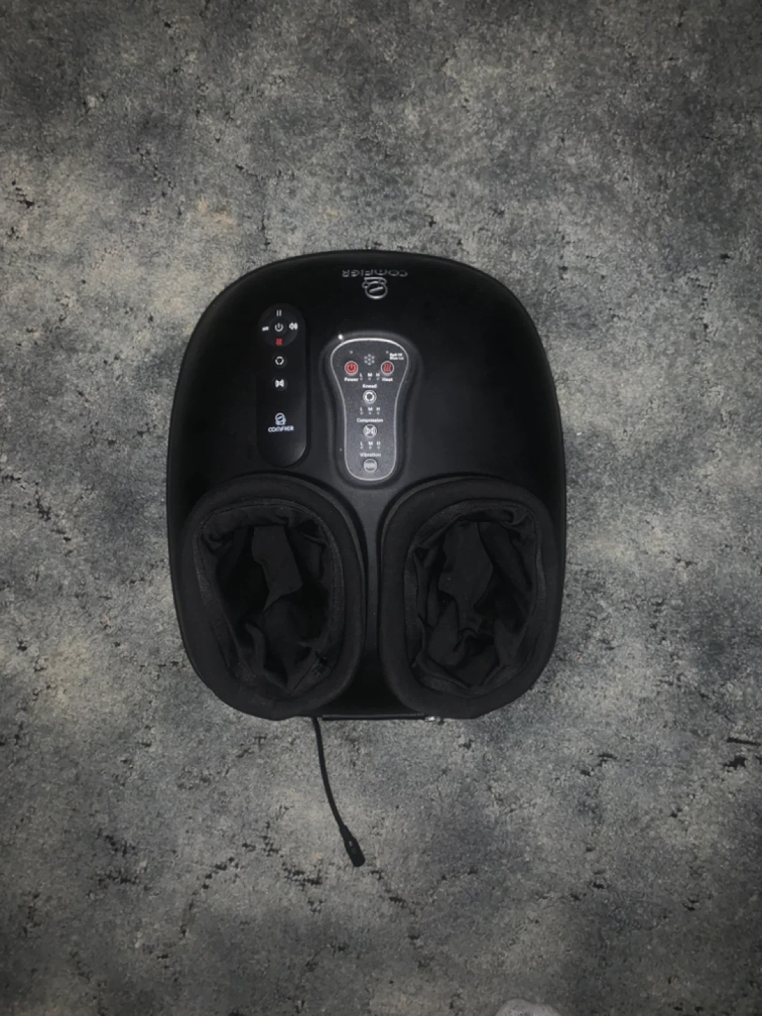 This Comfier foot massager offers heat, shiatsu, compression, and vibration for a relaxing experience. It includes a remote control for easy operation. Its compact design makes it suitable for home or office use. Pick up only cash only never used bought for my wife but she had already ordered one. Original box any questions please ask, best offer