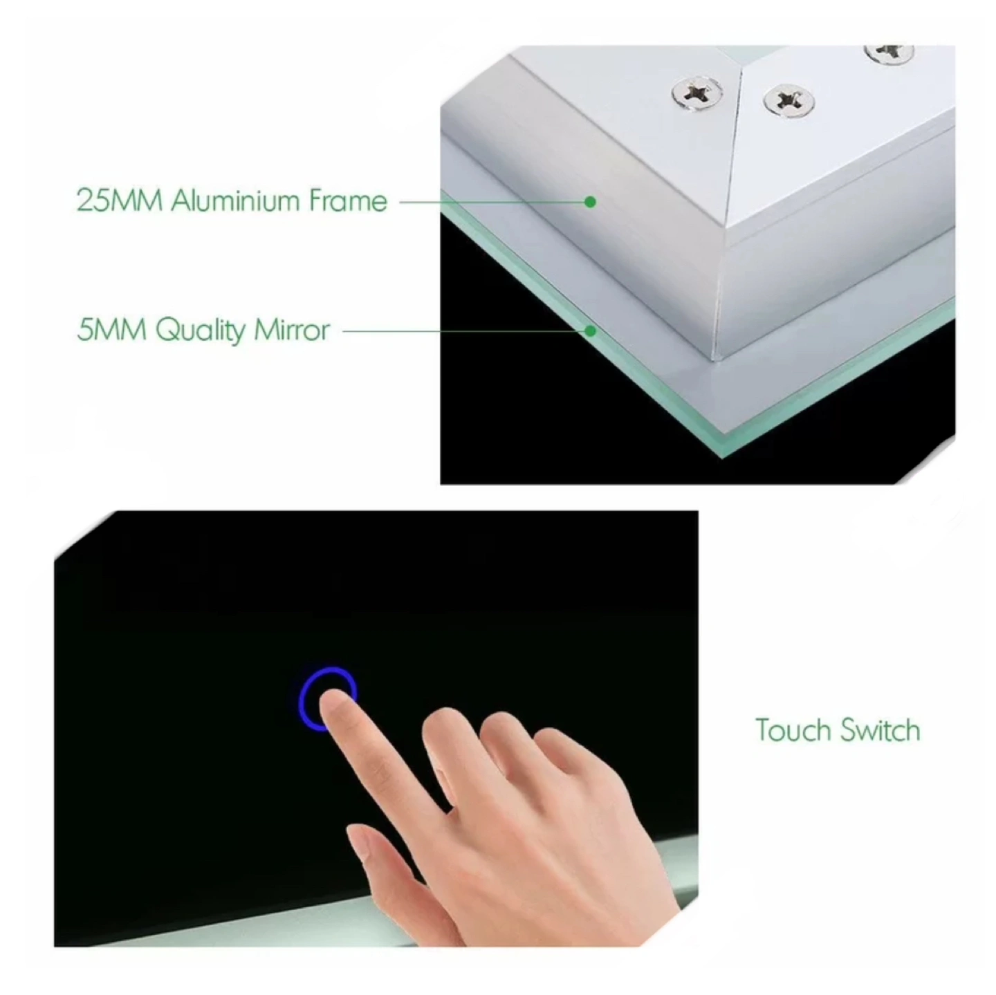 Vanity Mirror is designed for both recessed and wall mounting. It will provide three colour temperature lighting from 3000K to 5500K. With the touch sensor, the mirror light can be turned on/off, and adjust the brightness with a simple touch (dimmable). The 3rd generation eco-friendly Silver mirror material will give you 35% more clarity than a conventional mirror