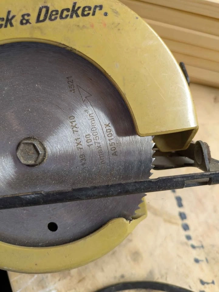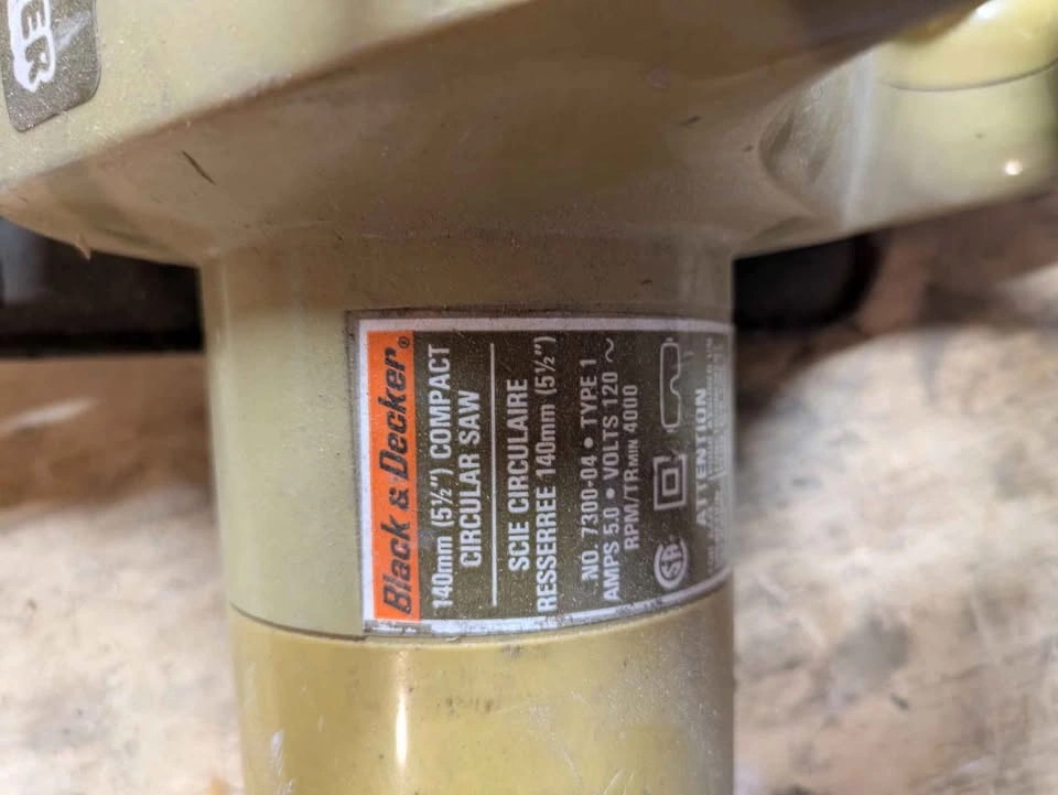 Black and Decker 5-1/2" circular saw. Includes fine toothed blade for clean cuts