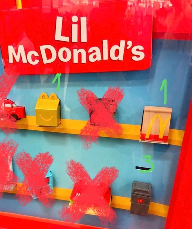 L’il McDoanlds, I have 3 burger grills, 1 take out bag, and 1 golden happy meal. I’m looking to get $5 cash each obo. Door pickup please. Thanks.