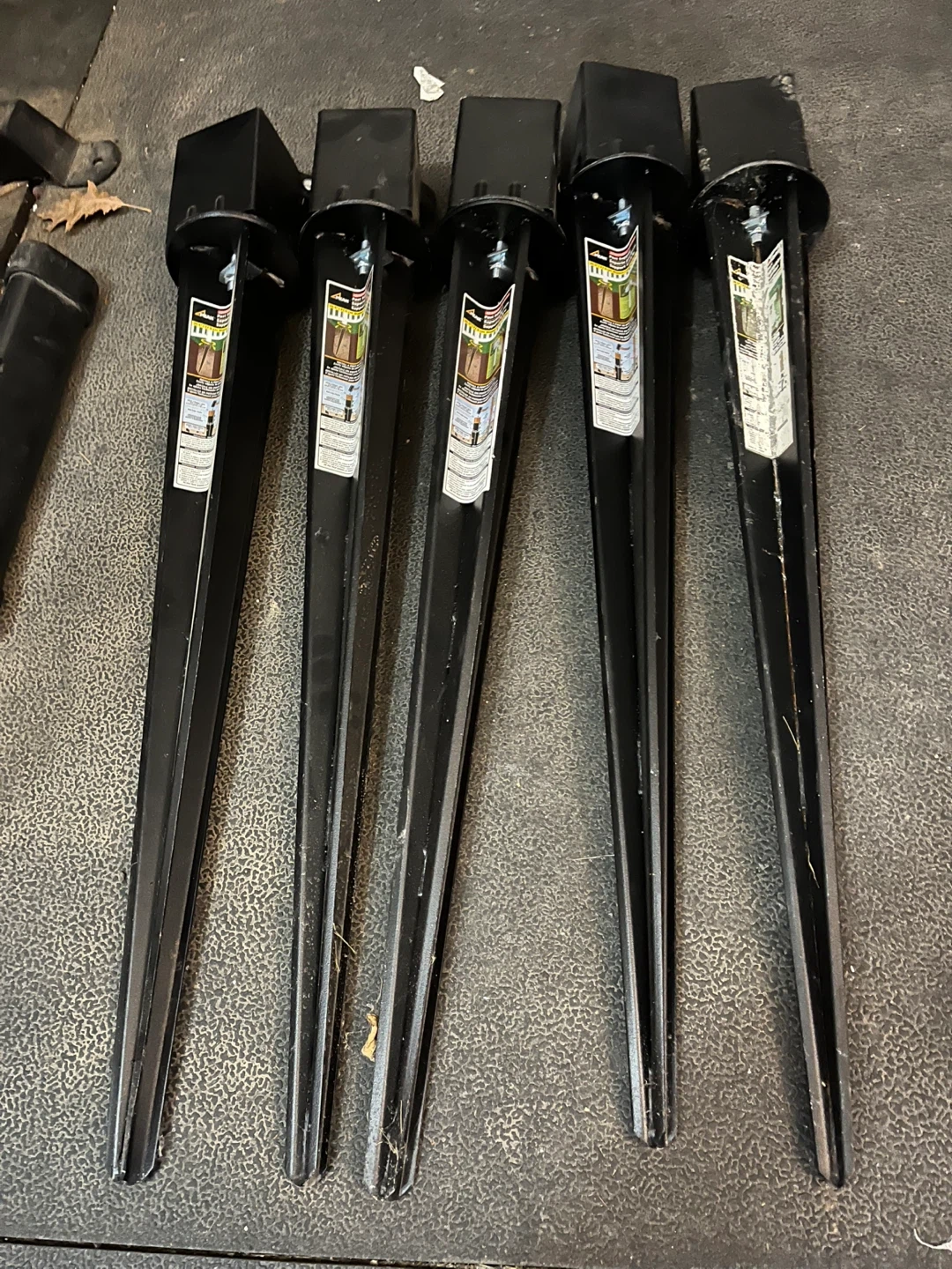 77I'm selling a 5 pack of ground anchor post supports, brand new and ready to use! These are great for securing posts for fences, decks, or other outdoor structures. They provide a stable and secure foundation for your projects 3ft long