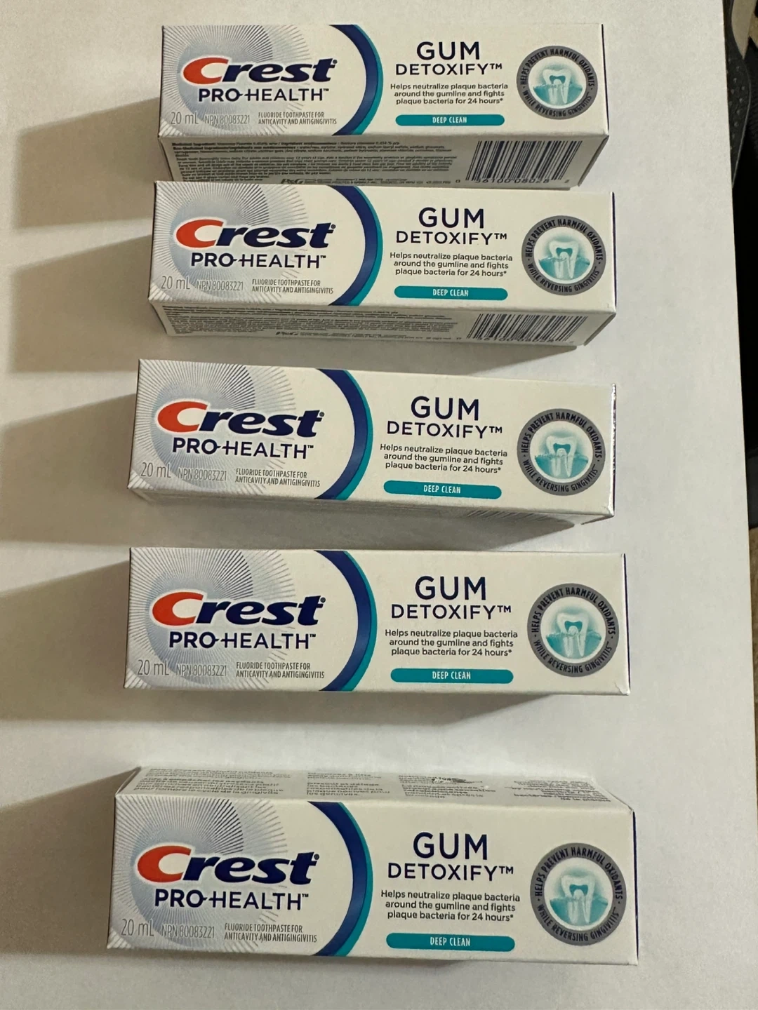 65Selling a tube of Crest Pro-Health Gum Detoxify Deep Clean toothpaste. It helps neutralize plaque bacteria around the gumline and fights plaque bacteria for 24 hours. Size is 20mL
