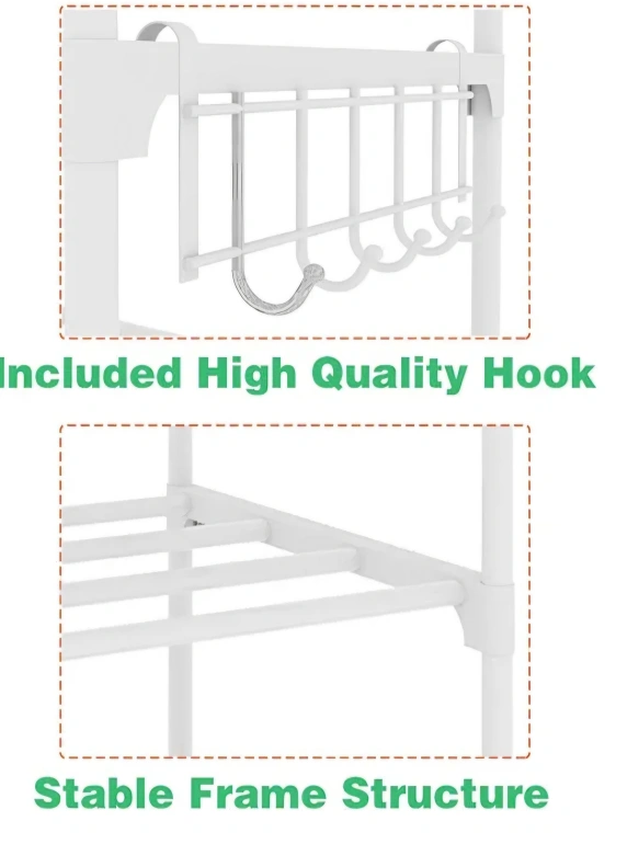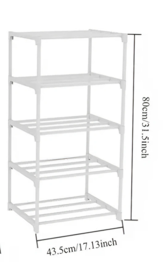 5 Tier Metal Narrow Storage, Shoes Rack - Entry/Closet White