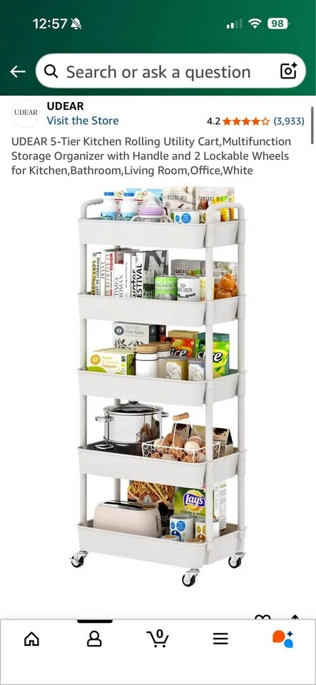 18Selling a UDEAR 5-Tier Rolling Storage Cart in excellent condition β super useful for organizing any space. Great for kitchens, bathrooms, laundry rooms, living rooms, or office supplies. β Key Features: 5 spacious tiers for maximum storage Smooth handle for easy movement 360Β° rotating wheels + 2 lockable wheels for stability Sturdy design β holds bottles, snacks, pantry items, cleaning supplies & more Ventilated bottom to keep items fresh Slim & space-saving ideal for apartments & small spaces Fully assembled & ready to use π Size: Height: 139 cm (54.7β) Length: 39 cm (15.35β) Width: 29 cm (11.42β) π° Price: $17 Huge savings vs retail ($44). π Pickup only ( Oshawa Downtown) π§Ό Clean and in great shape