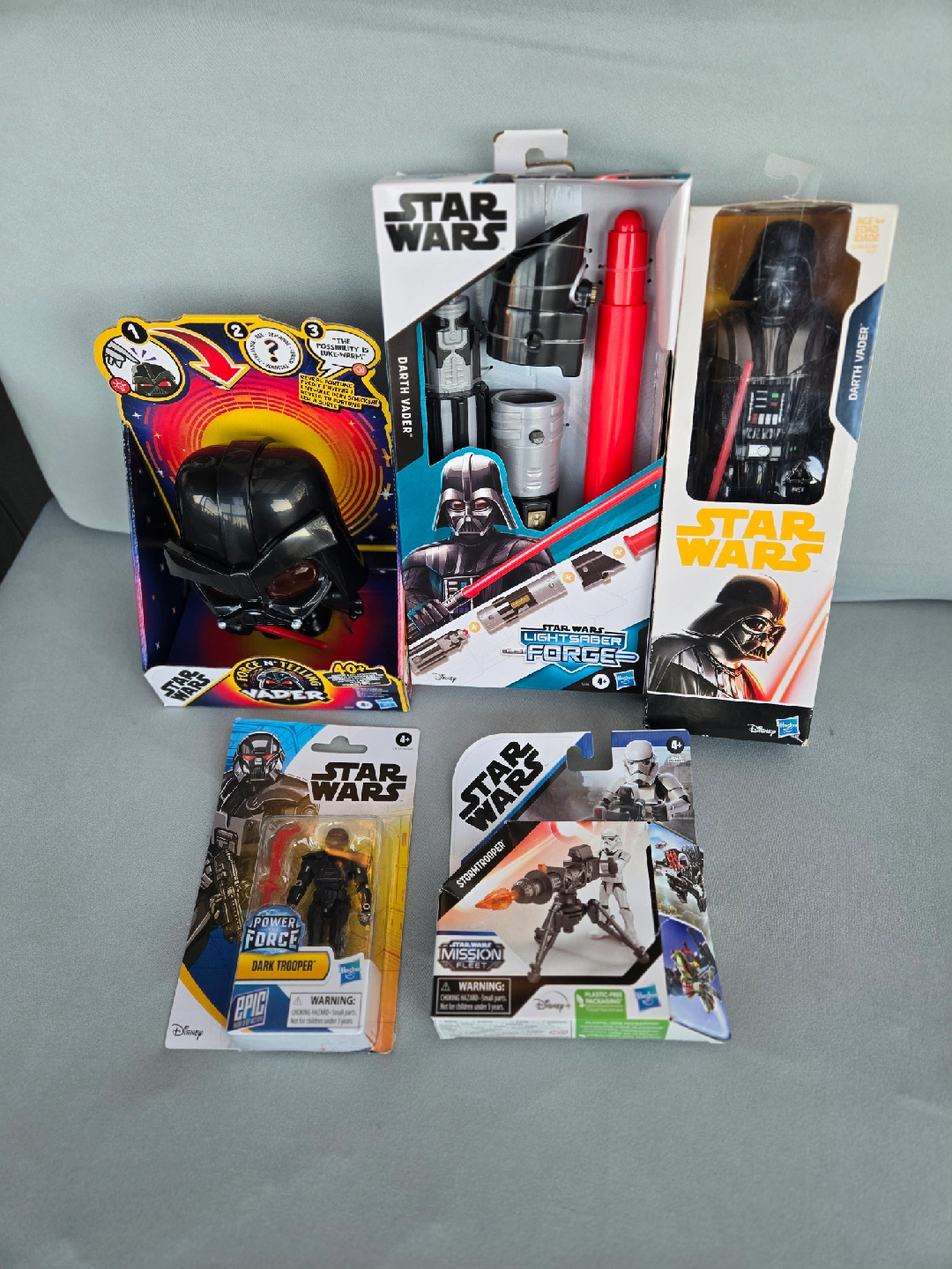 5 brand new Star wars toys. All new sealed and giftable Comes with - darth Vader force and telling talking figure Darth Vader lightsaber forge 12 inch darth Vader figure, And 2 star wars storm trooper action figures. Price is firm Pick up near 22nd skytrain new west