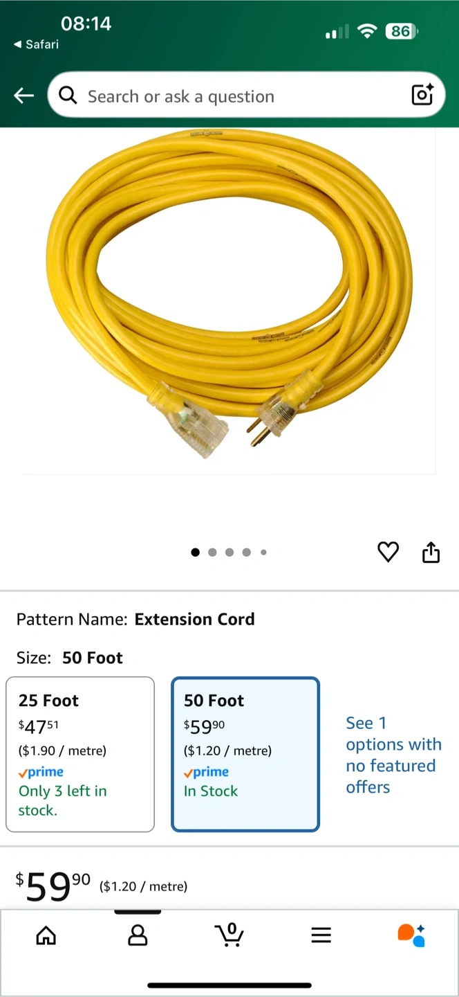 55Heavy Duty Contractor's Extension Cord $59 +HST on Amazon. I can deliver it for free if you aren't too far.