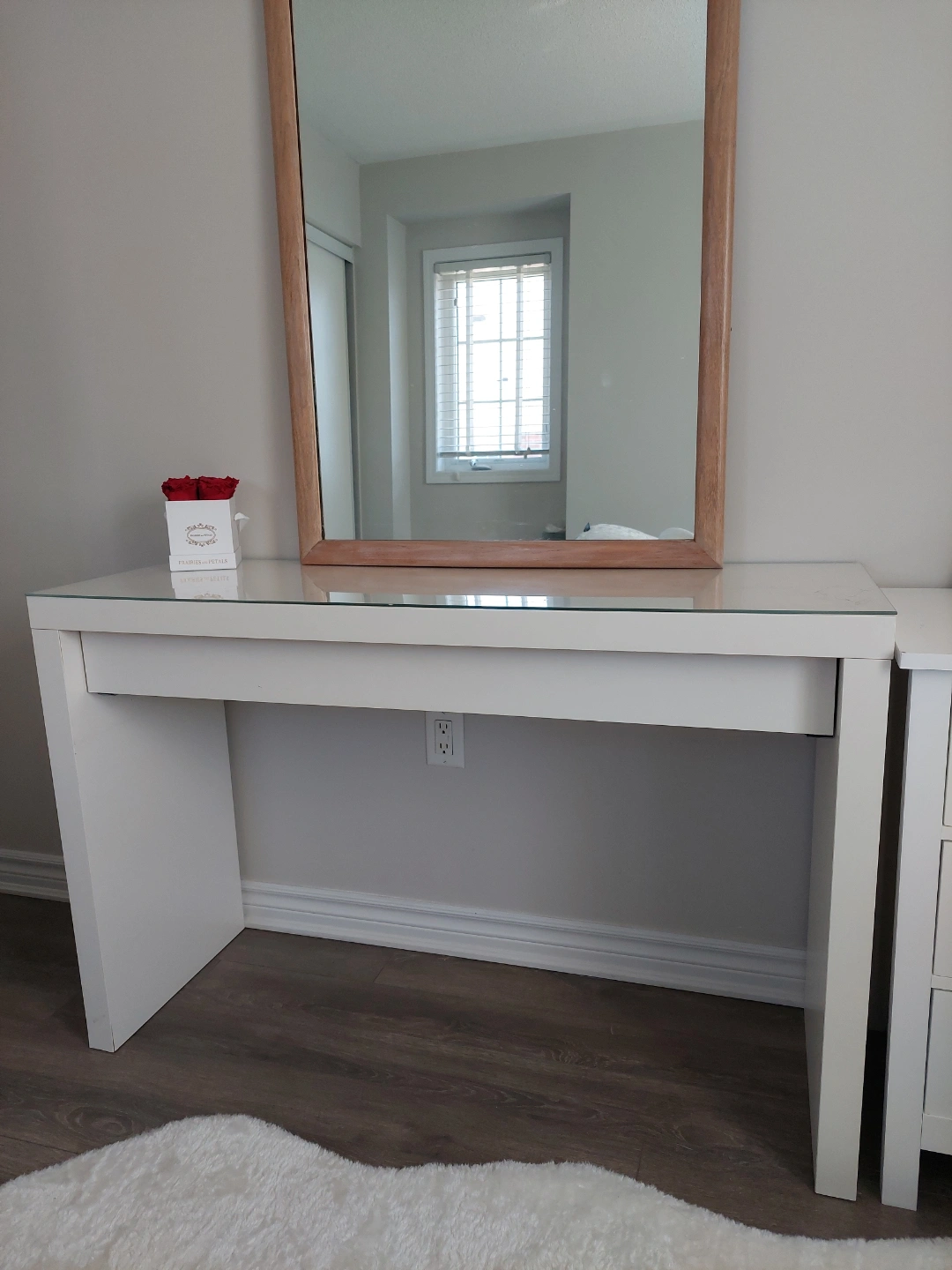 IKEA MALM White Dressing Table WITH GLASS TOP