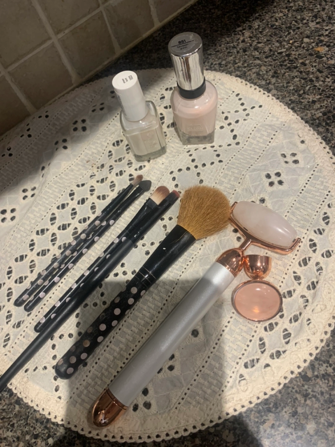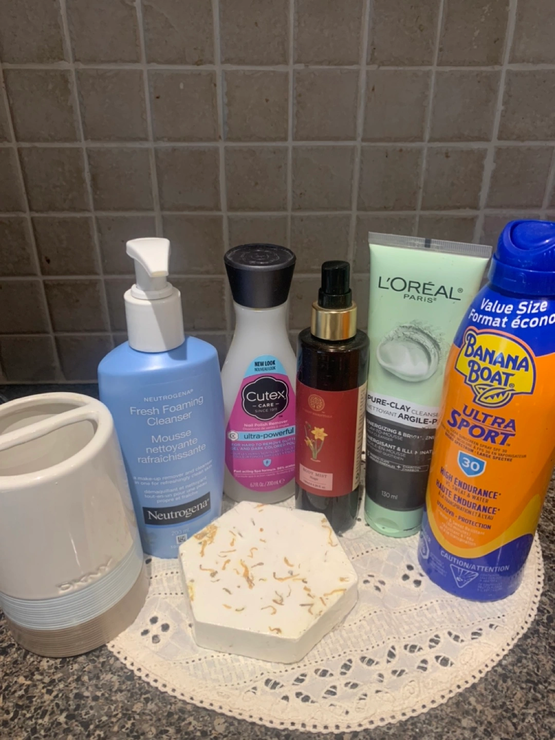 293Assorted beauty products: Parachute coconut oil, Regis Designline flat iron spray, Aveda smooth infusion, nail polishes, makeup brushes, rose quartz roller, Neutrogena cleanser, Cutex nail polish remover, L'Oréal cleanser, banana boat sunscreen, and handmade soap. Various sizes and quantities. Pick up only **move out sale - see other items in profile**