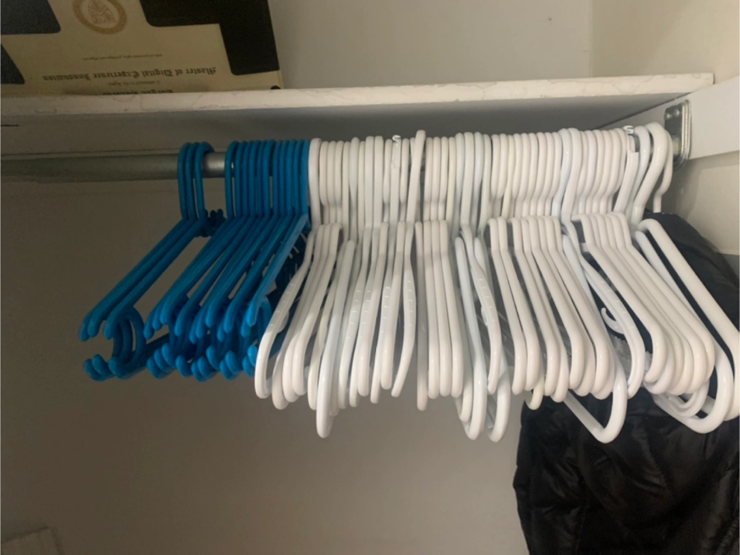 293Large quantity of plastic hangers. Mix of white and blue. Great for organizing closets. Pick up only **move out sale - see other items in profile**