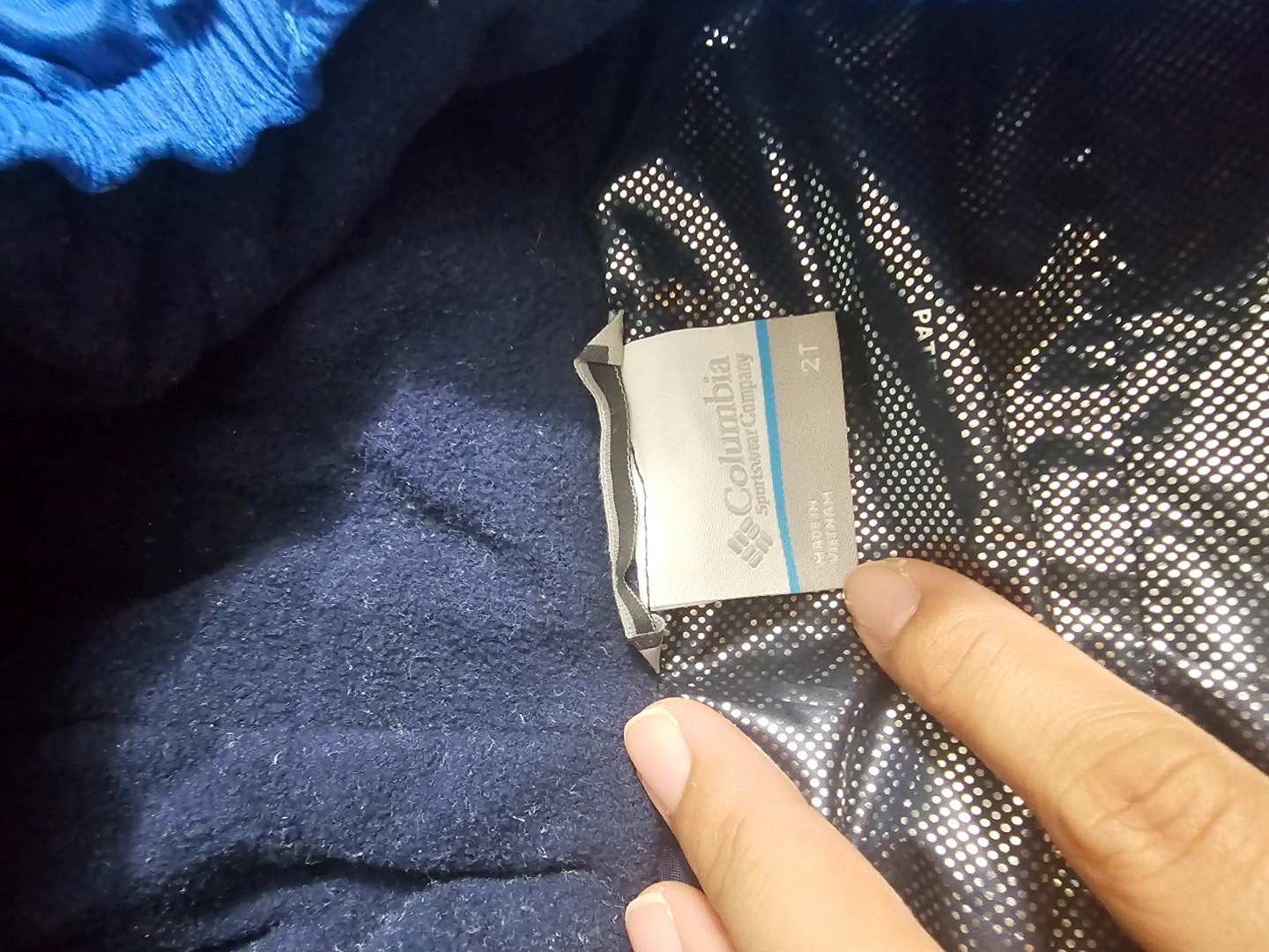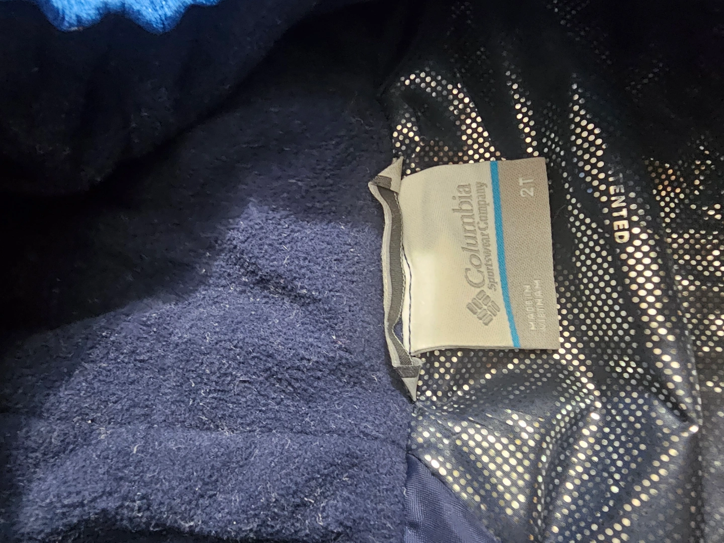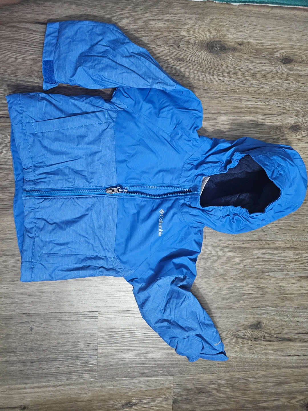 Columbia Sportswear Company toddler boy's jacket. Size 2T. Blue colour. Features a zip-up front and a fleece-lined hood. Great for colder weather.