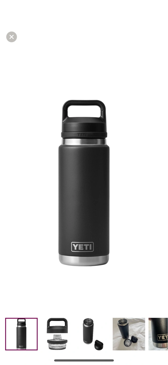 Black YETI Rambler 26 oz bottle. Durable stainless steel construction. Includes lid and carrying handle. Keeps drinks cold or hot for hours.