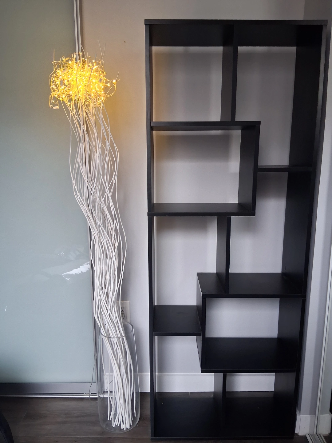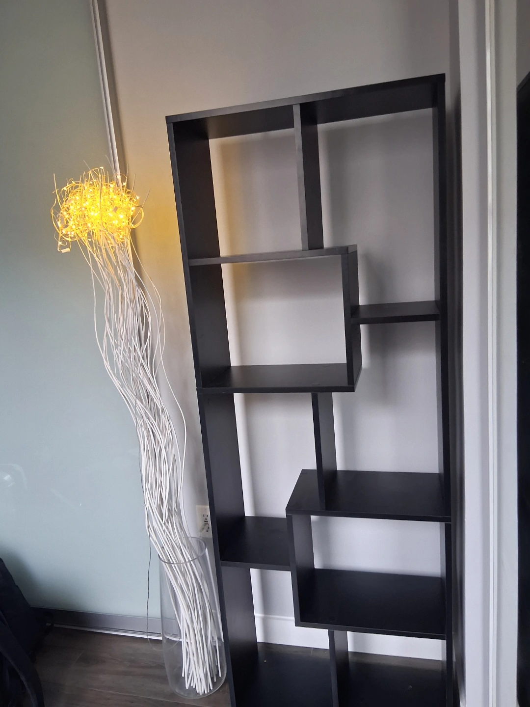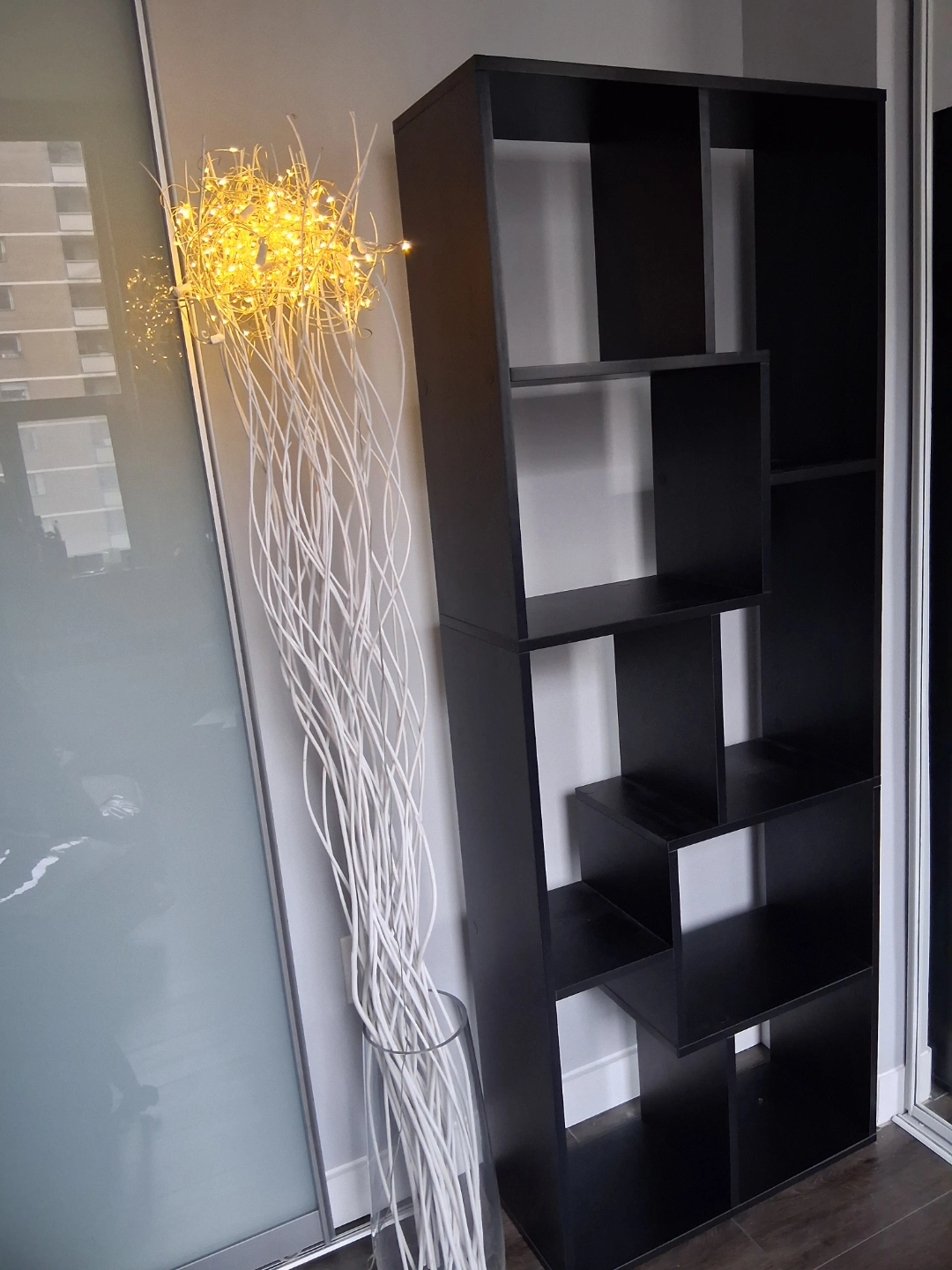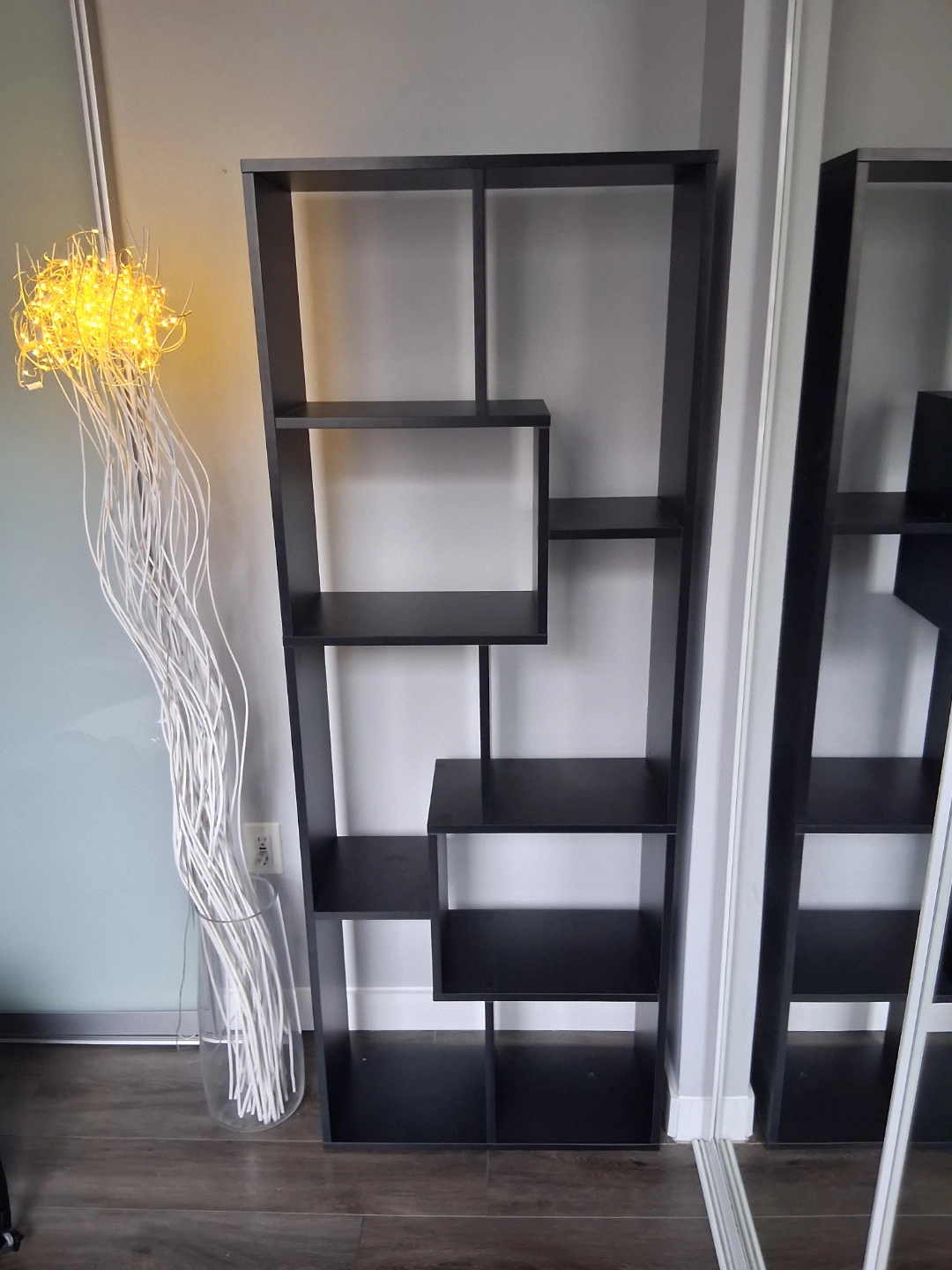 Tall shelves cabinet. Multiple level shelving. Black finish. Measures 157cm tall and 62cm wide. Minimalist style. Perfect for books, decor, or other items. NO damages. Excellent condition.