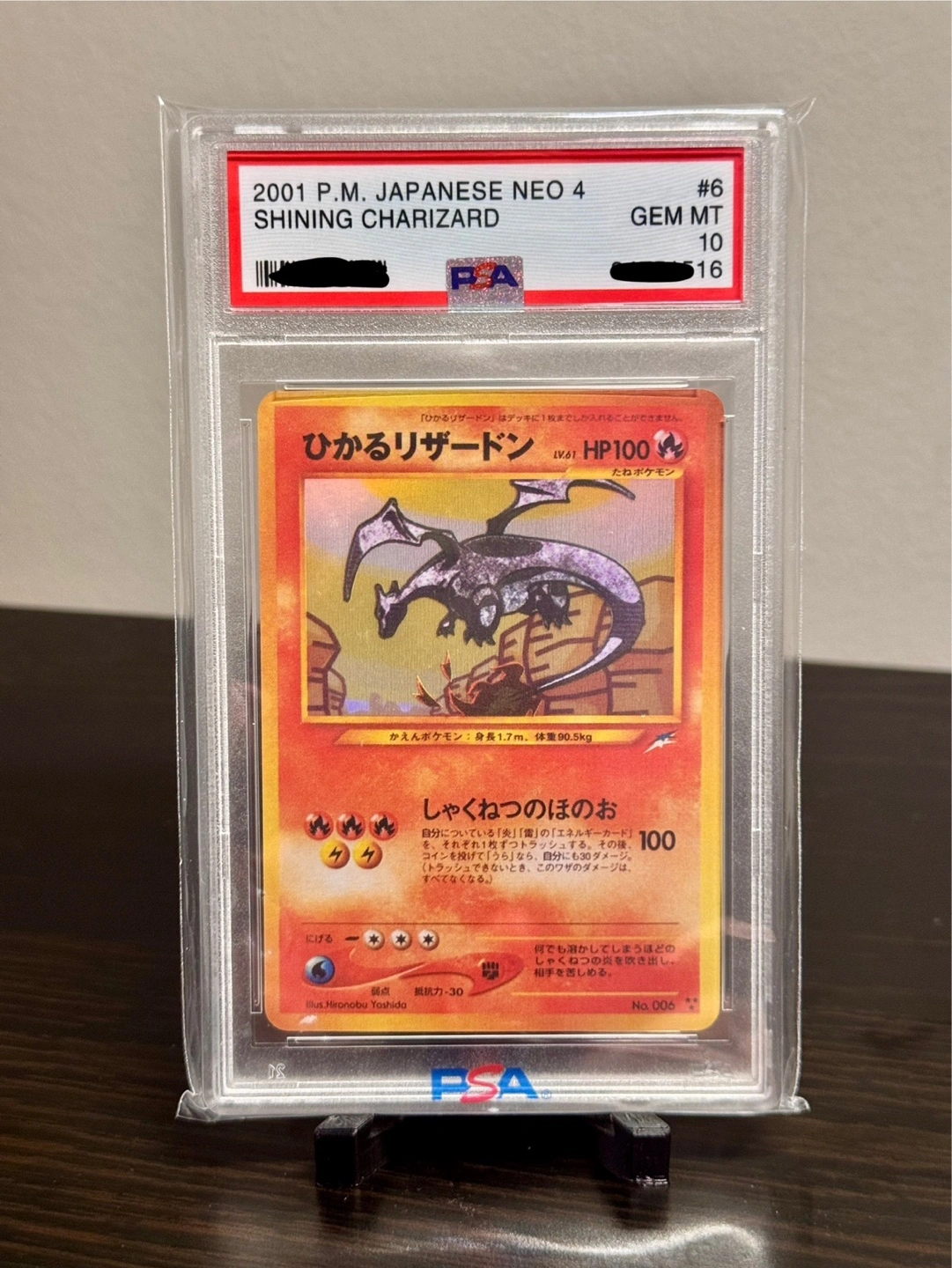 PSA Graded 2001 Japanese Neo 4 Shining Charizard #6 GEM MT 10