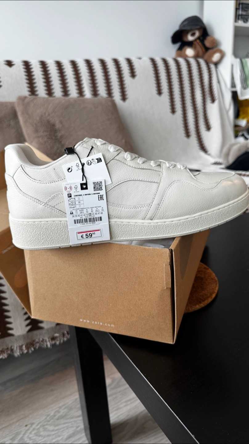 New Never Worn Zara men's leather sneakers. Off-white colour. Size 44. Comes in original box and packaging. Minimalist design. Perfect for everyday wear.