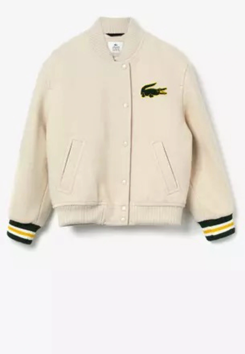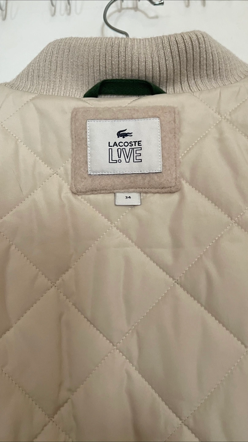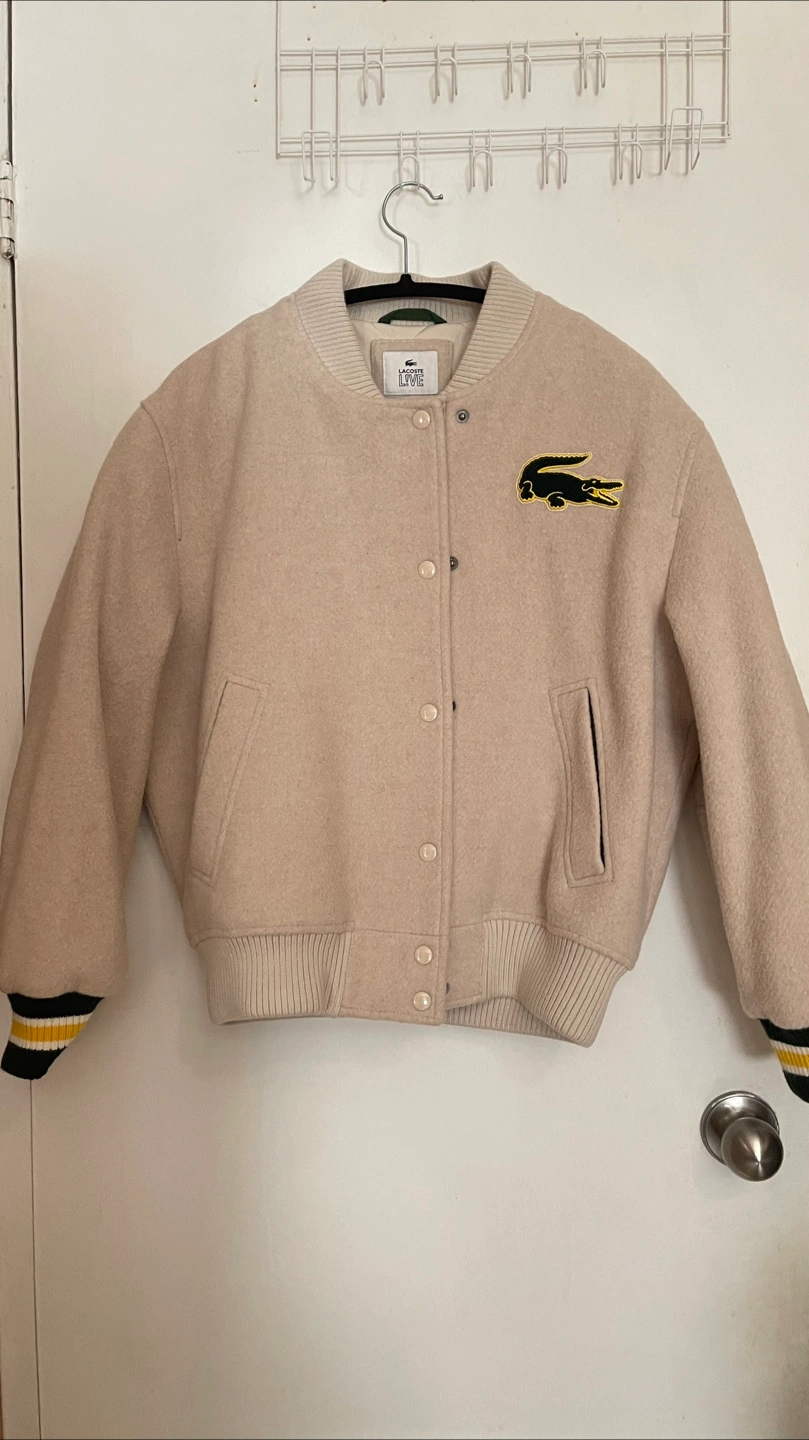 Cream and green bomber jacket. Features quilted detailing and ribbed cuffs. Snap button closure. Never used just kept in closet.