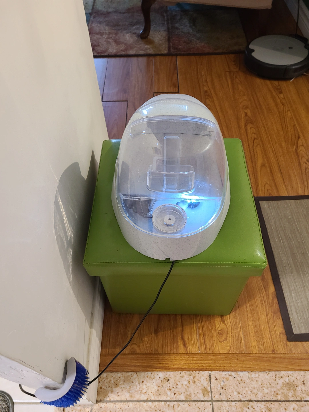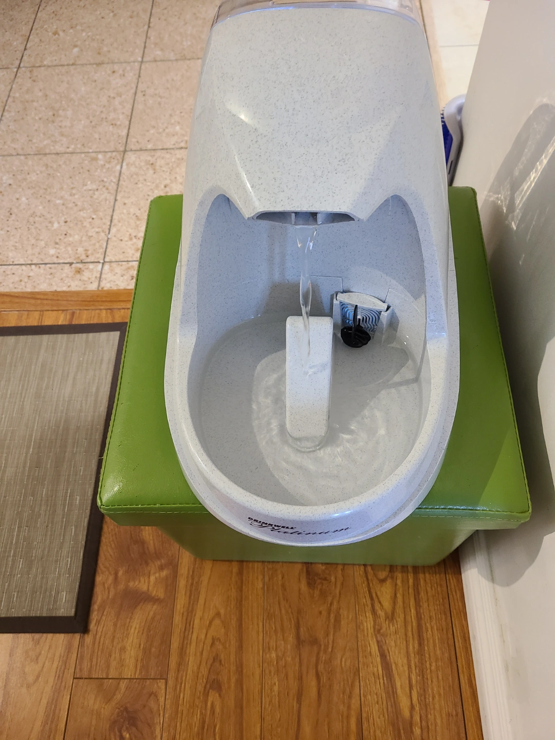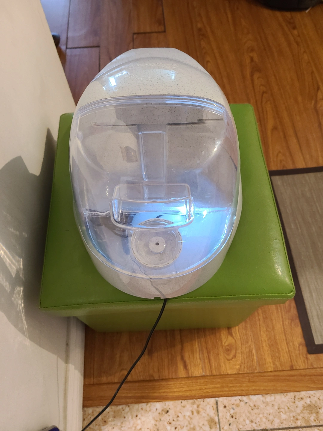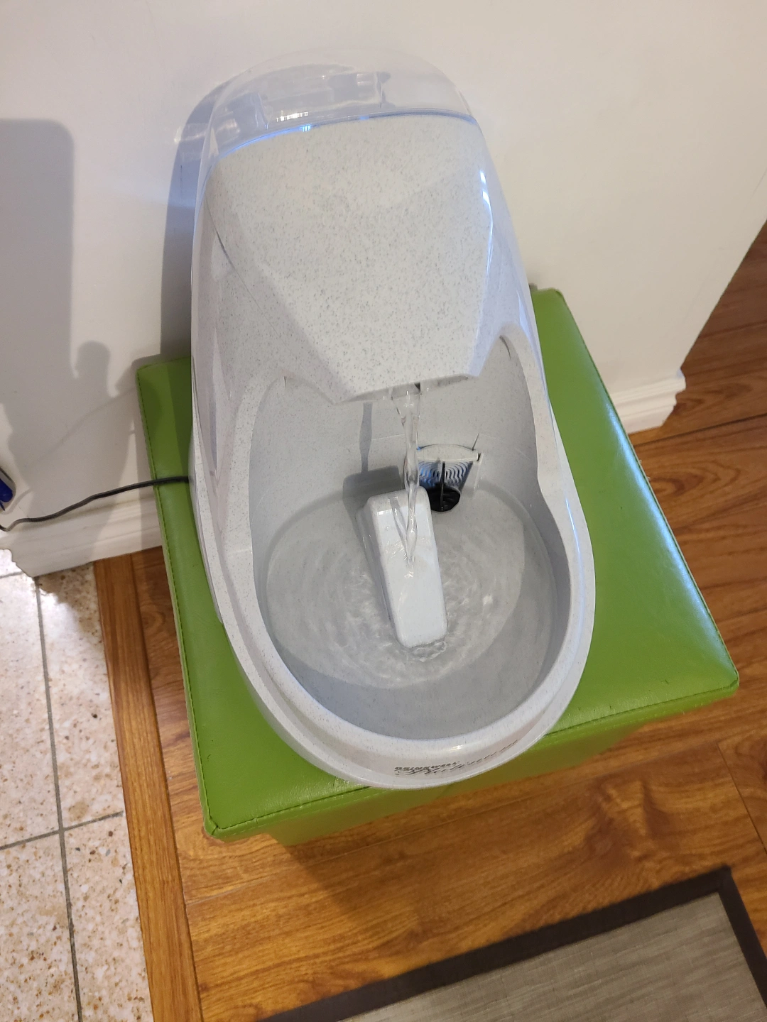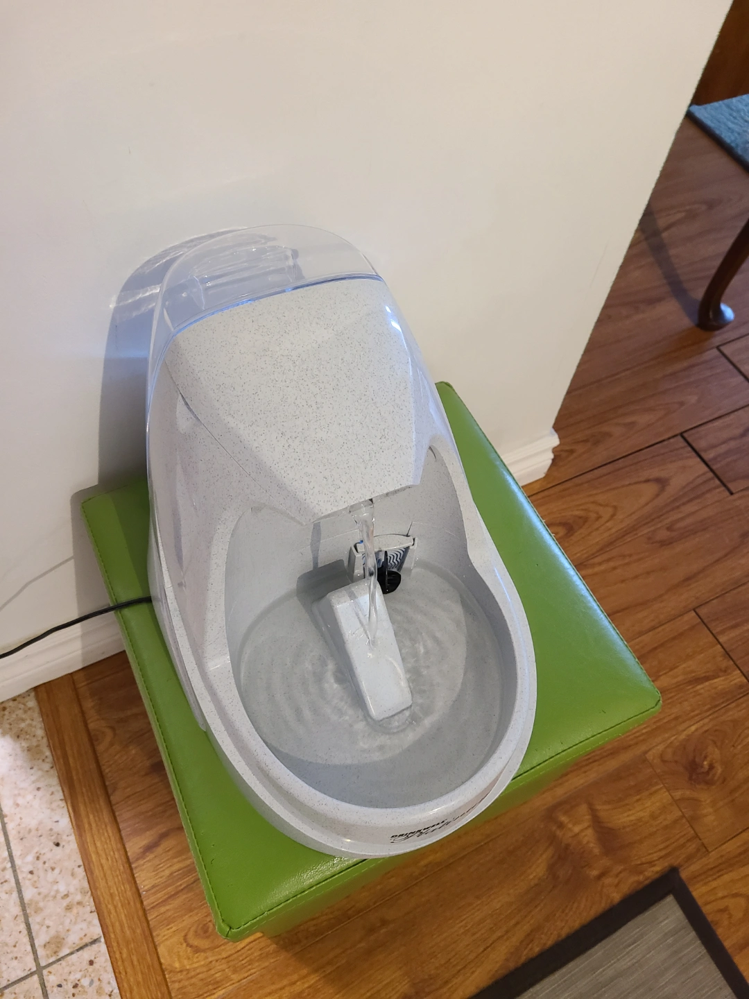 Clean pet fountain. Works well. Includes power cord. Night light.Great for cats and dogs especially if you're away for a day or more.
