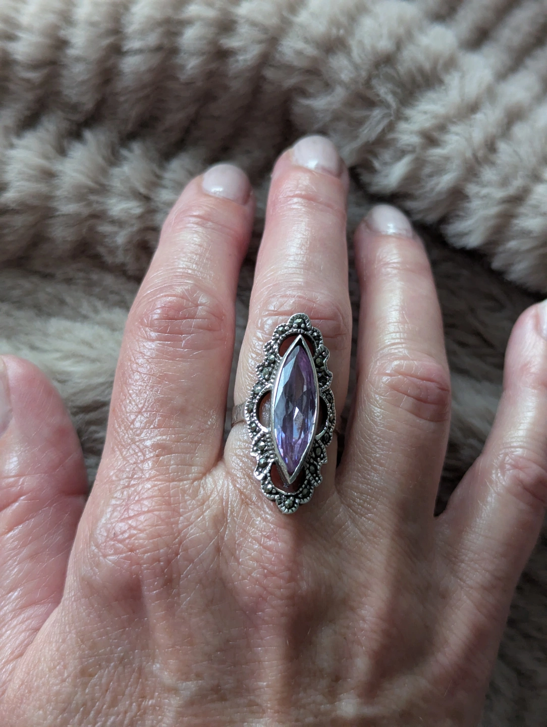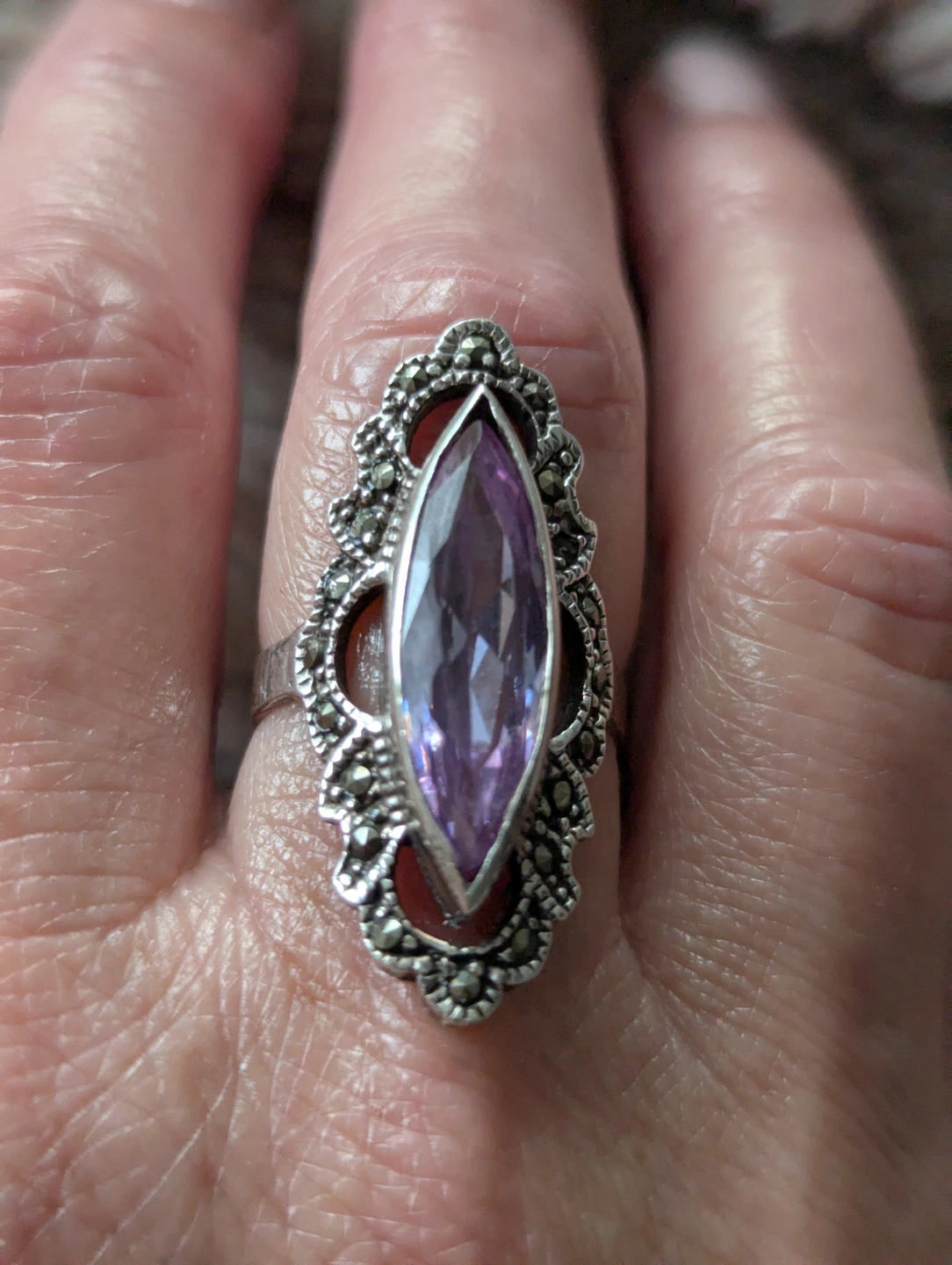 Vintage Marquise Amethyst Ring with Marcasite Accents