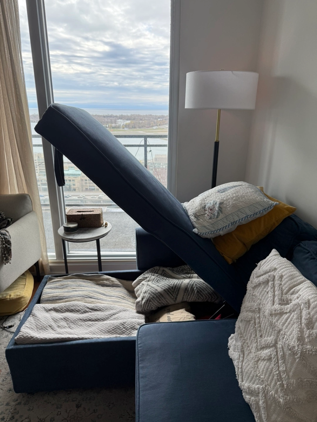 Selling a gently used Structube ARWA sectional! This versatile sofa easily converts into a comfortable bed and offers built-in storage — perfect for maximizing space in any home.