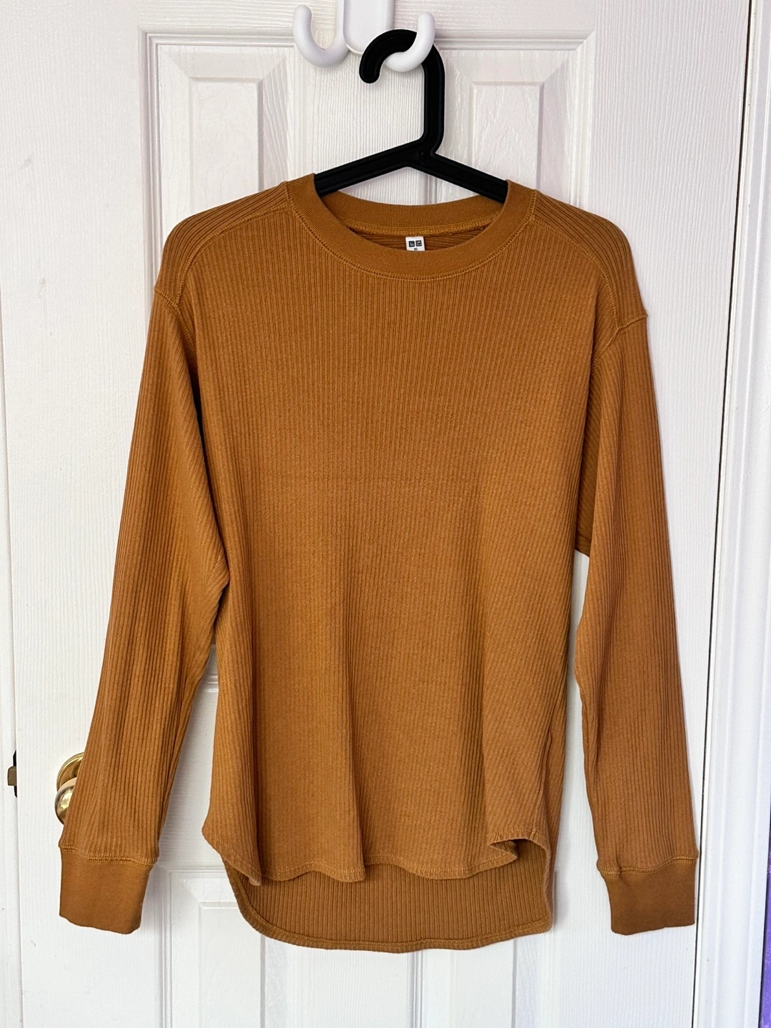 Uniqlo Women's Mustard Yellow Long Sleeve Ribbed Shirt